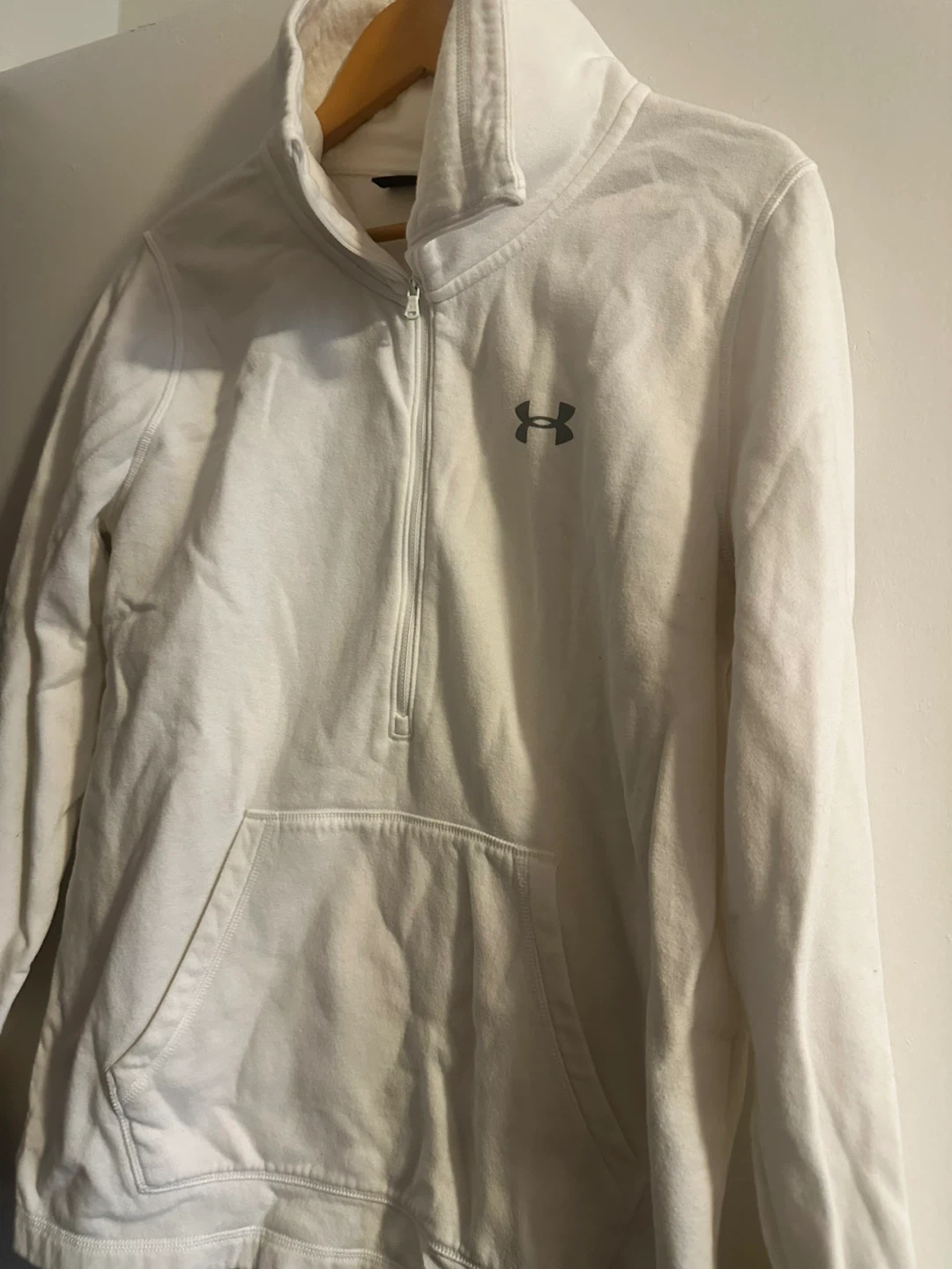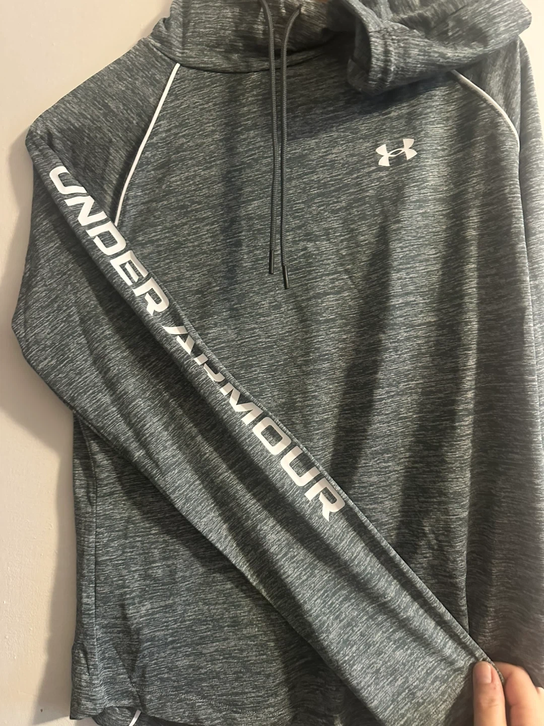 A collection of athletic wear including a Nike Livestrong tee, Under Armour tee and quarter zip, and a Calvin Klein Performance hoodie. All are in good condition and ready for your next workout! Sizes most are L some xL and Medium