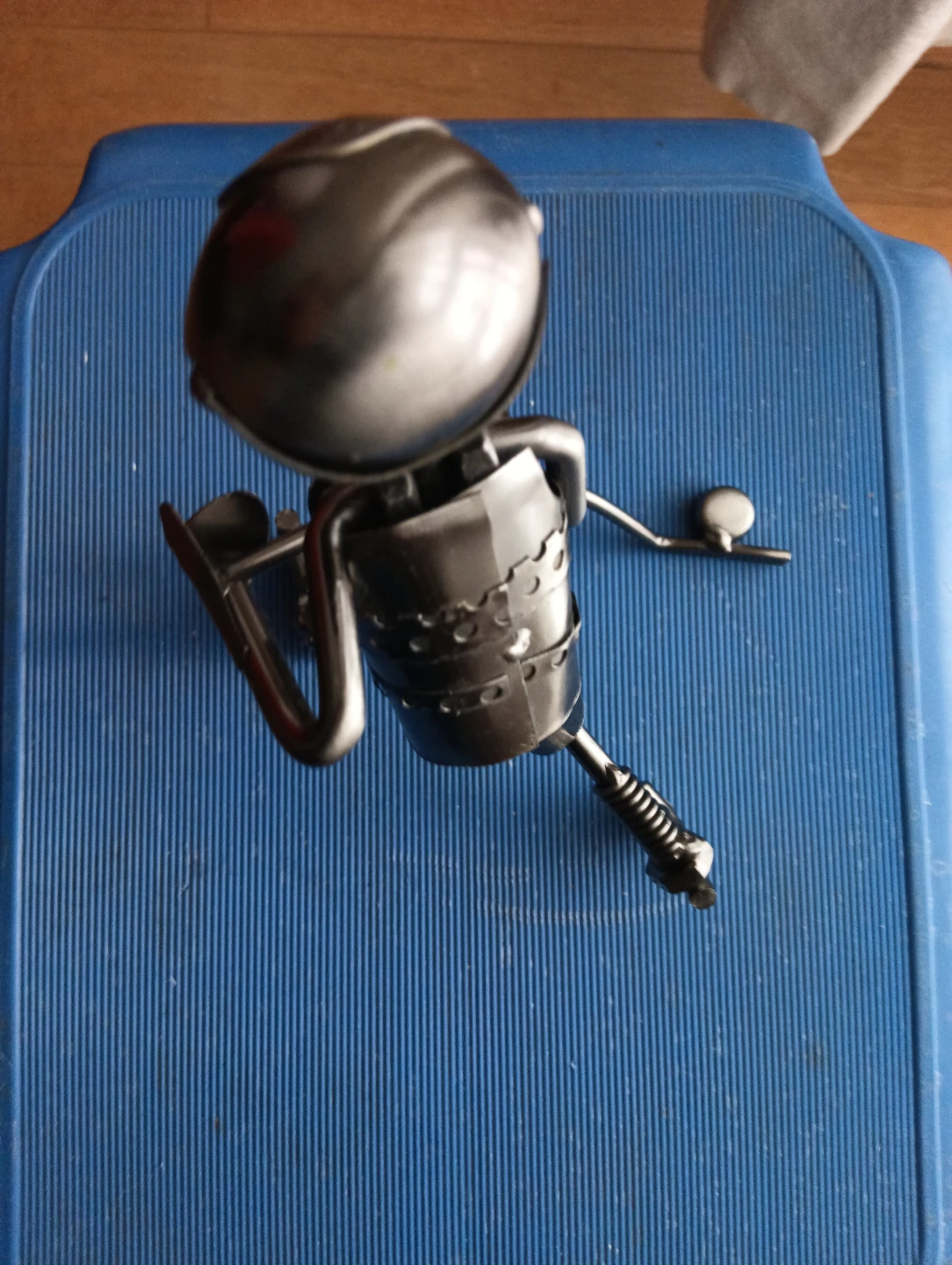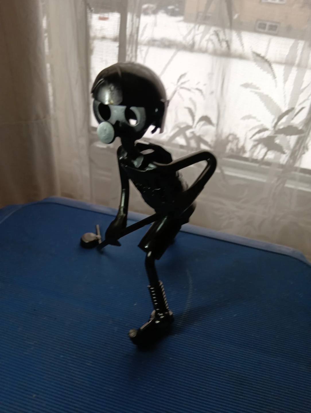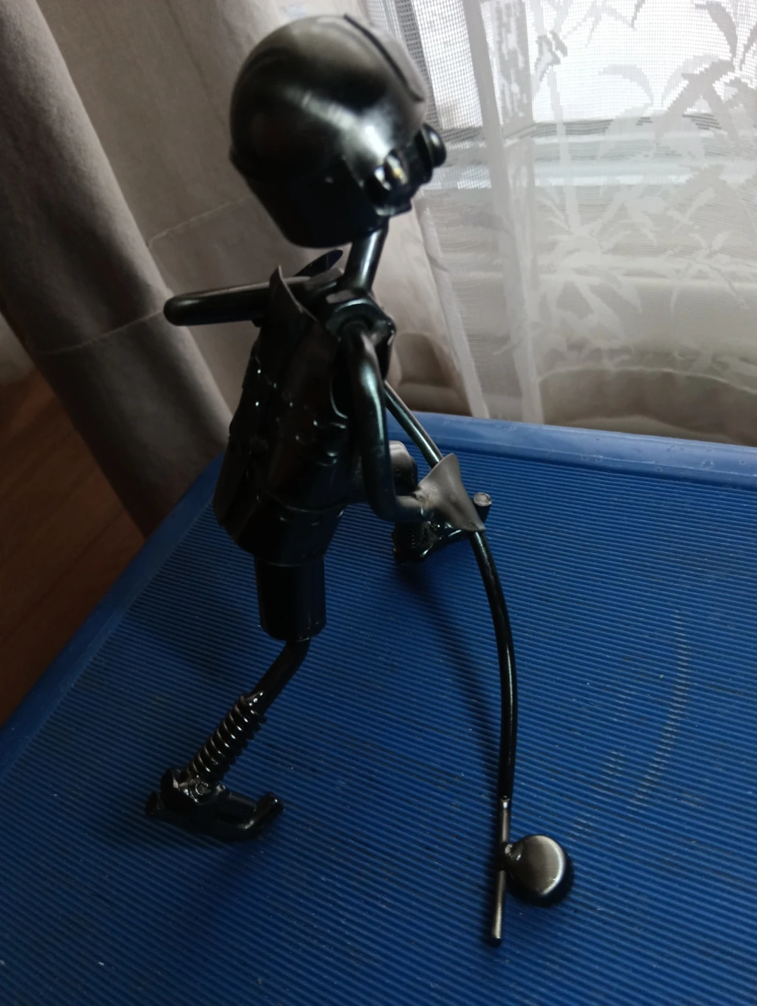 This is a handcrafted metal figurine of a hockey player. It's a sturdy and unique piece of art, perfect for any hockey fan's collection or as a decorative item for your home