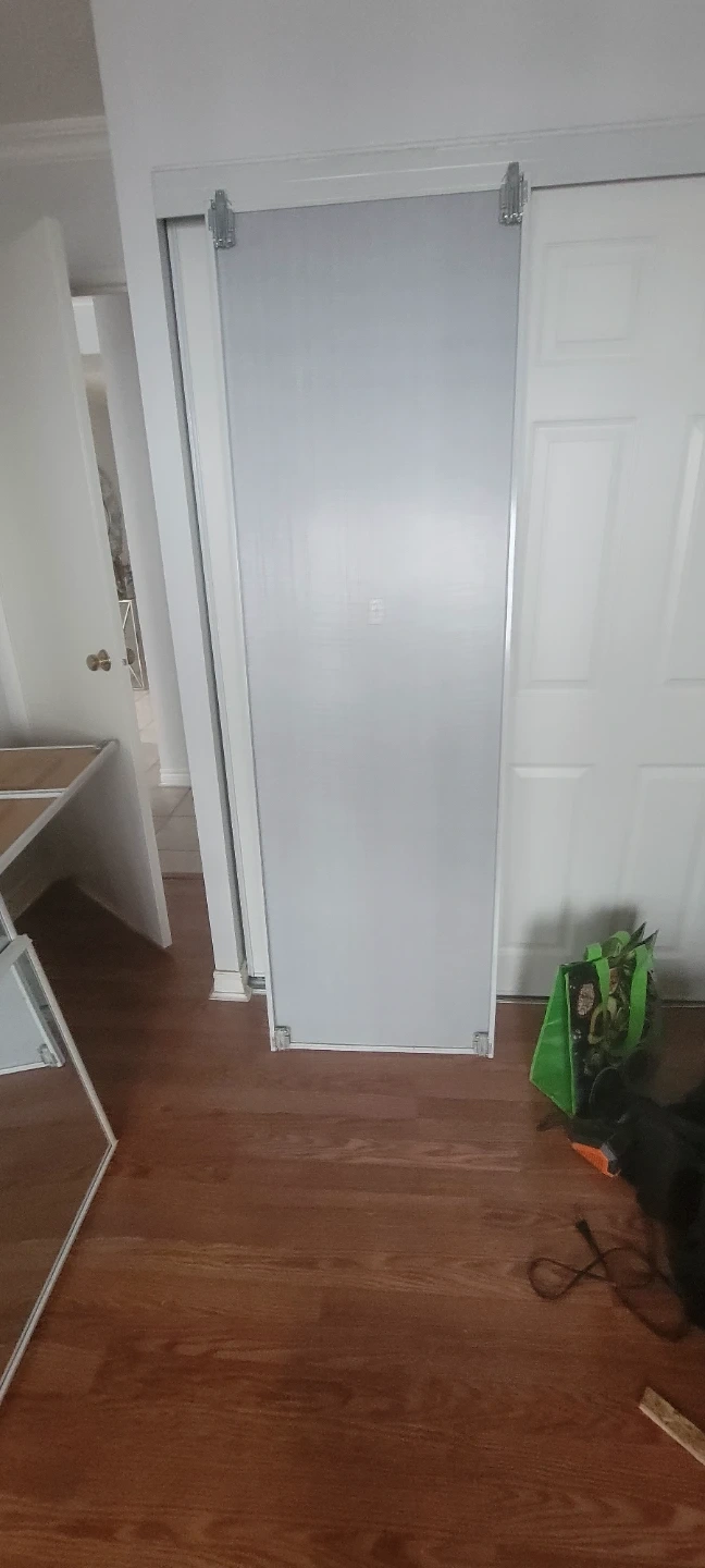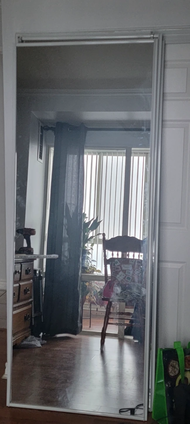 Selling a sliding wardrobe door that comes with all the necessary hardware. It's in good condition and ready to be installed in your home. 50dollars for each pair size are high 78x24.5 and 78x31 mirror roller top and bottom are 49 and 57