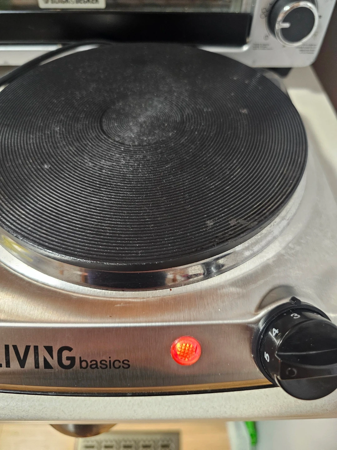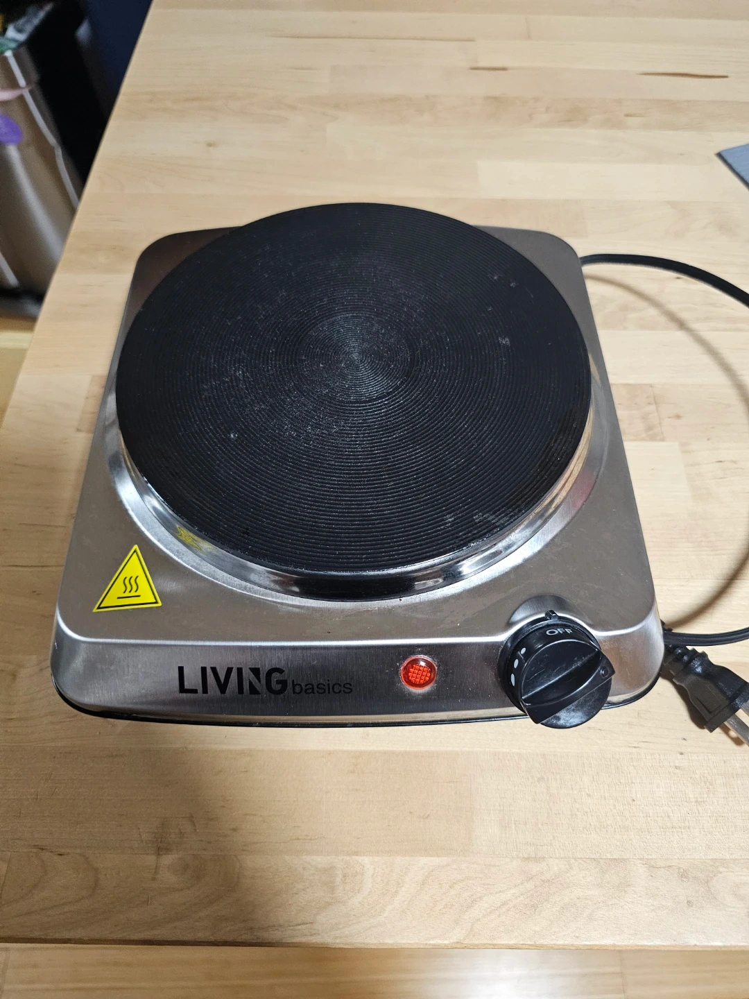 Selling a Living Basics hot plate! It's in great condition and ready for a new kitchen. Perfect for small spaces or as an extra burner when you're cooking up a storm