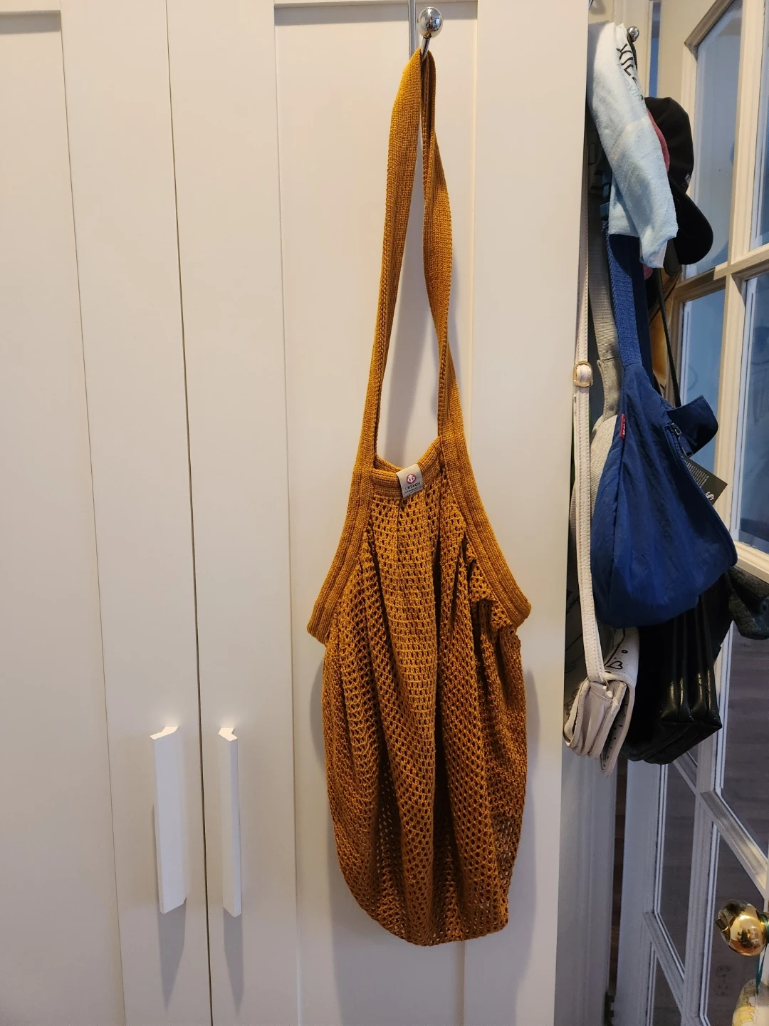 A lovely organic cotton string bag all the way from Denmark in a beautiful mustard yellow colour! It's perfect for groceries, shopping, or carrying your everyday essentials. Lightweight and easy to fold up and store when not in use