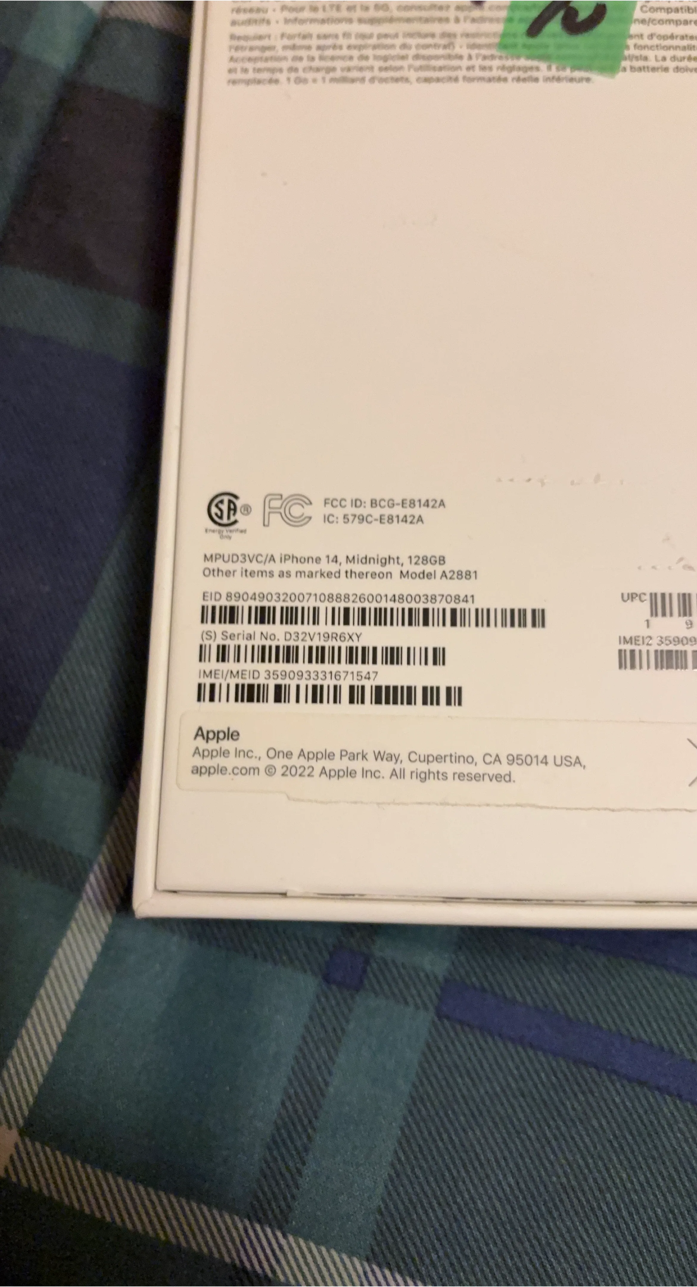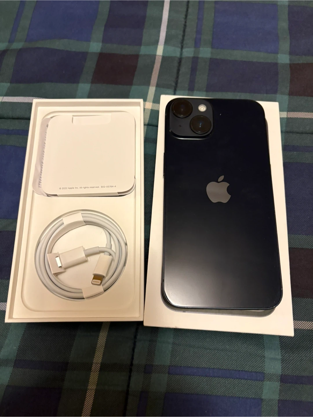 Selling a brand new Apple iPhone 14 in Midnight with 128GB of storage! It comes with the original box and included components, like the charging cable. Model number is A2881.