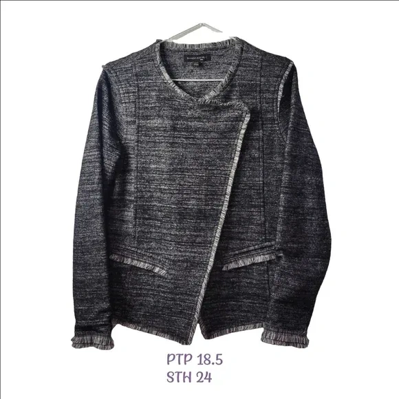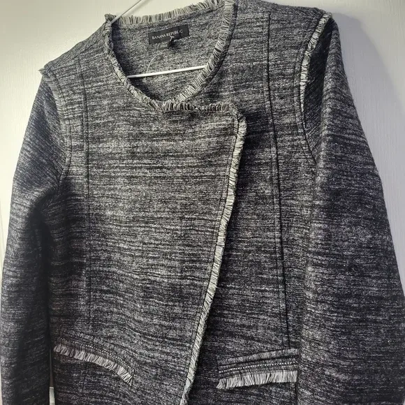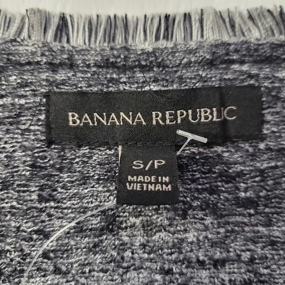 Banana Republic blazer in size small (S/P). Made in Vietnam. The shell is 52% rayon, 28% wool, and 20% polyester. The lining is 100% polyester, exclusive of decoration