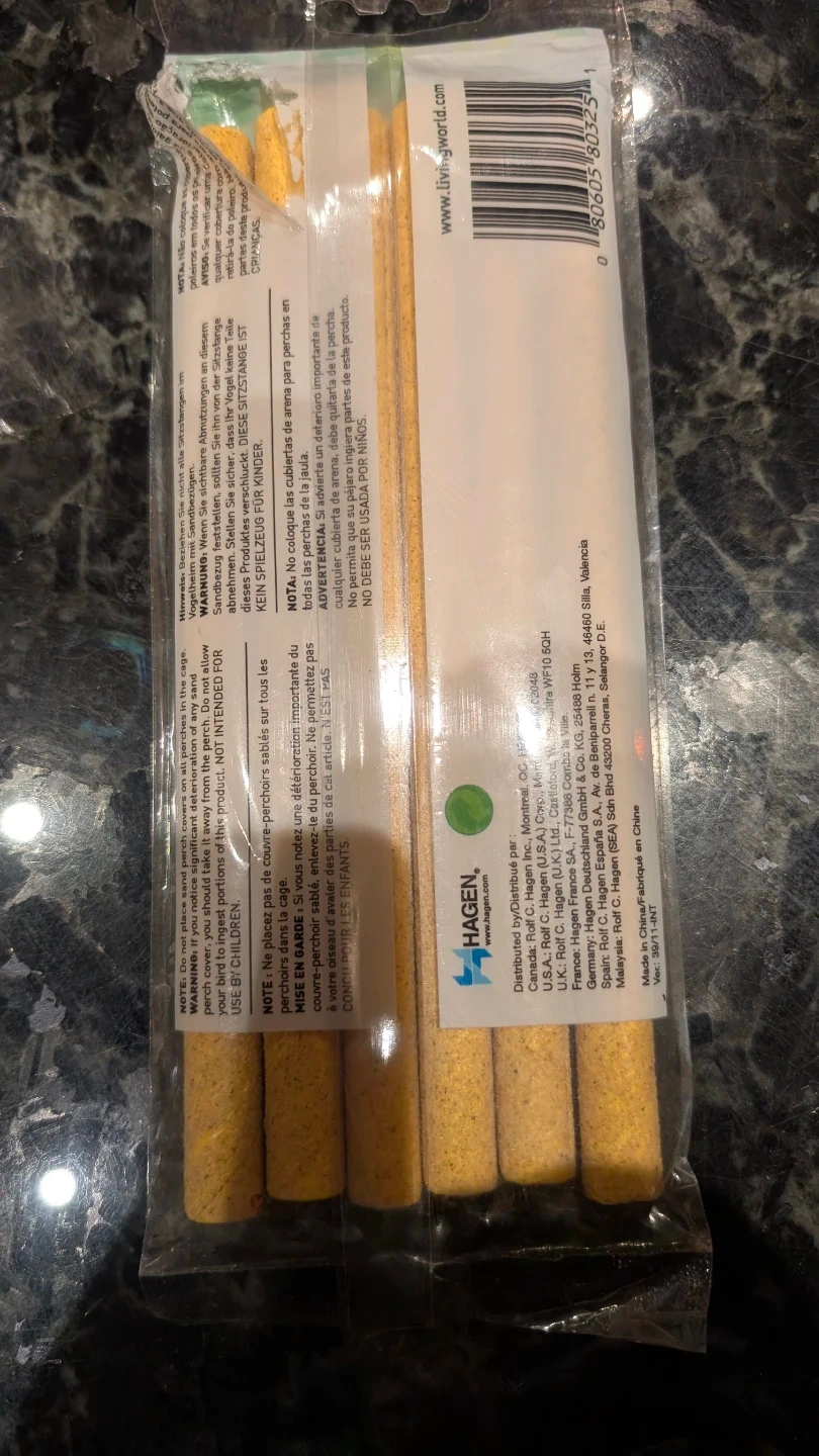 Living World Sand Perch Covers in size small, designed for small birds! These perch covers help keep your bird's nails clean and trimmed, promoting good hygiene. The package includes 6 units. Perfect for maintaining your feathered friend's health and comfort! Opened but couldn't use.