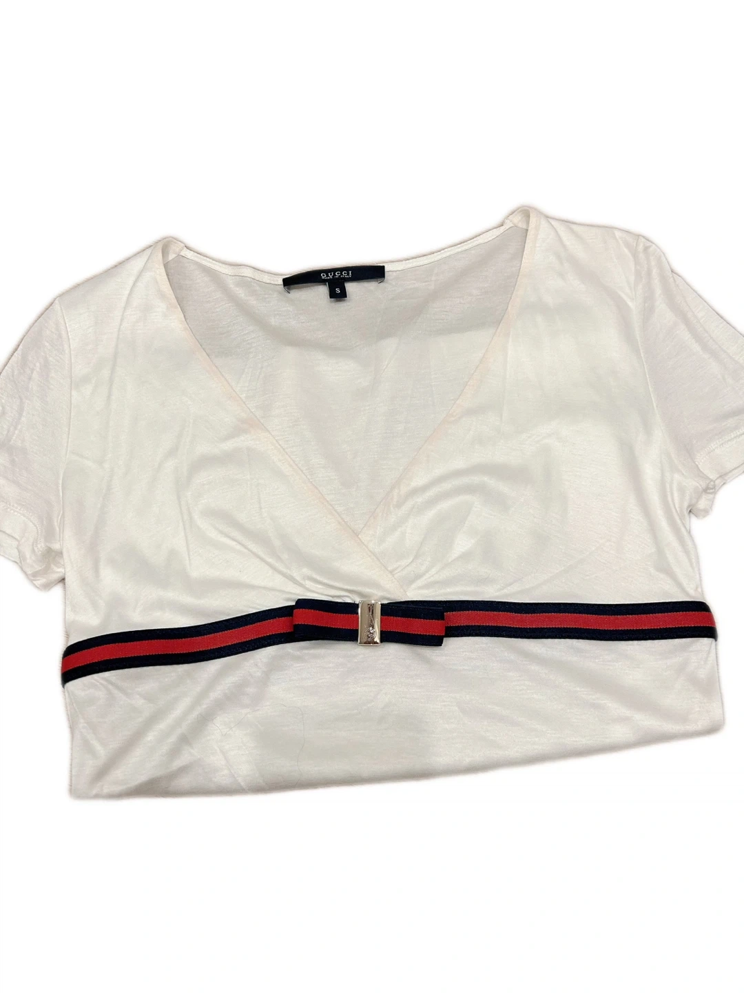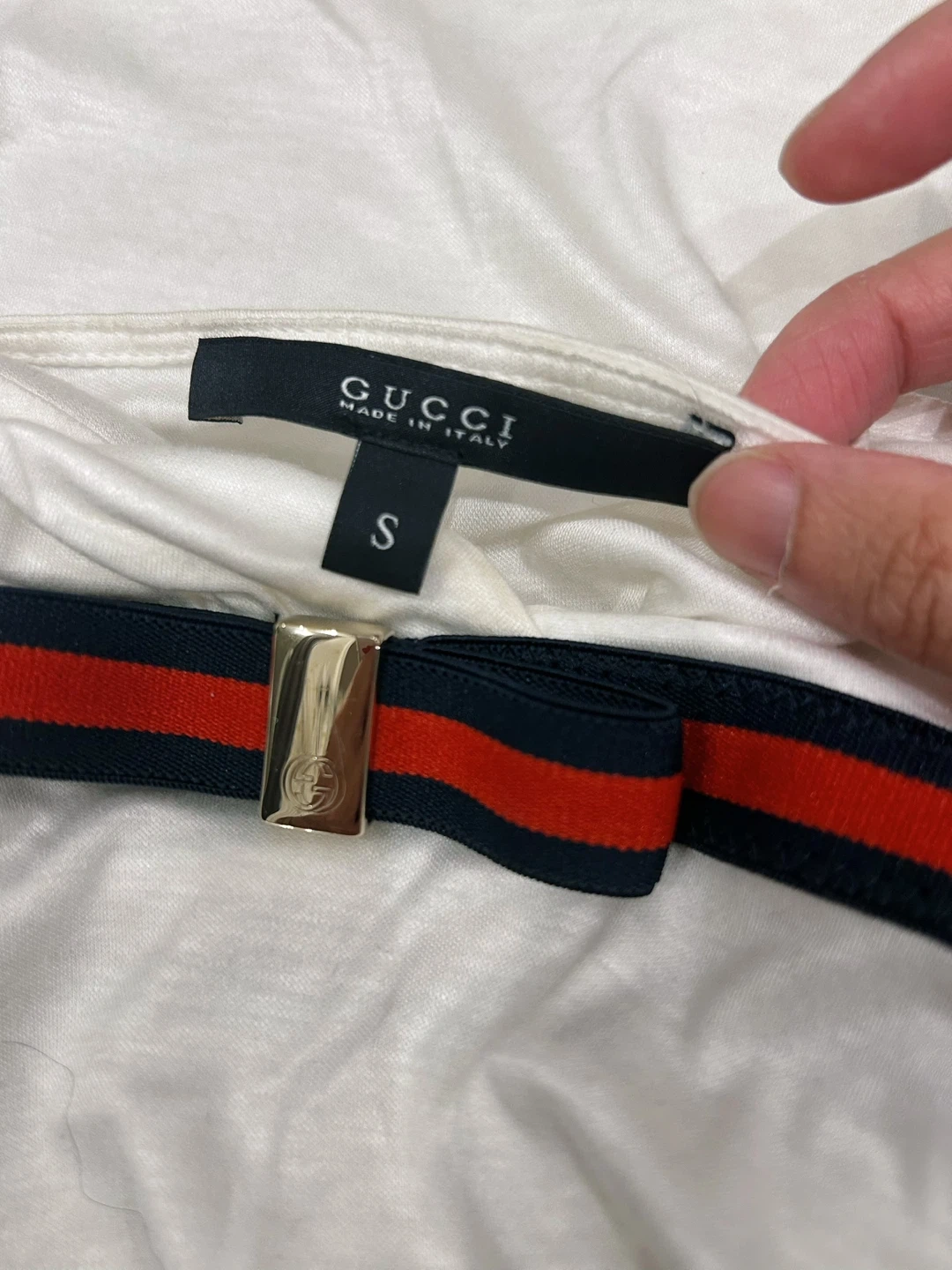 Selling a cute Gucci white t-shirt! It features a stylish ribbon detail. The size is S and it's made of 100% modal