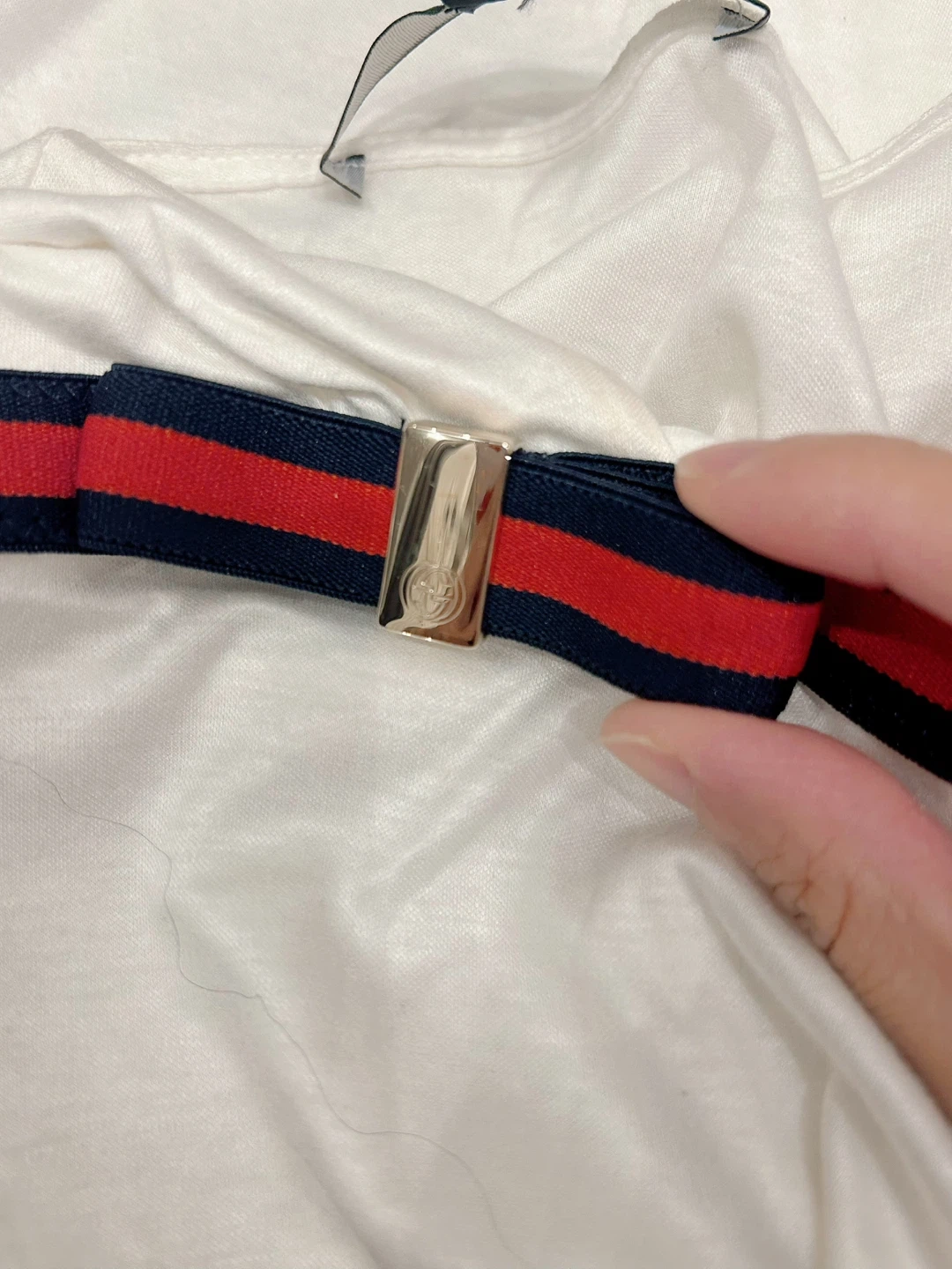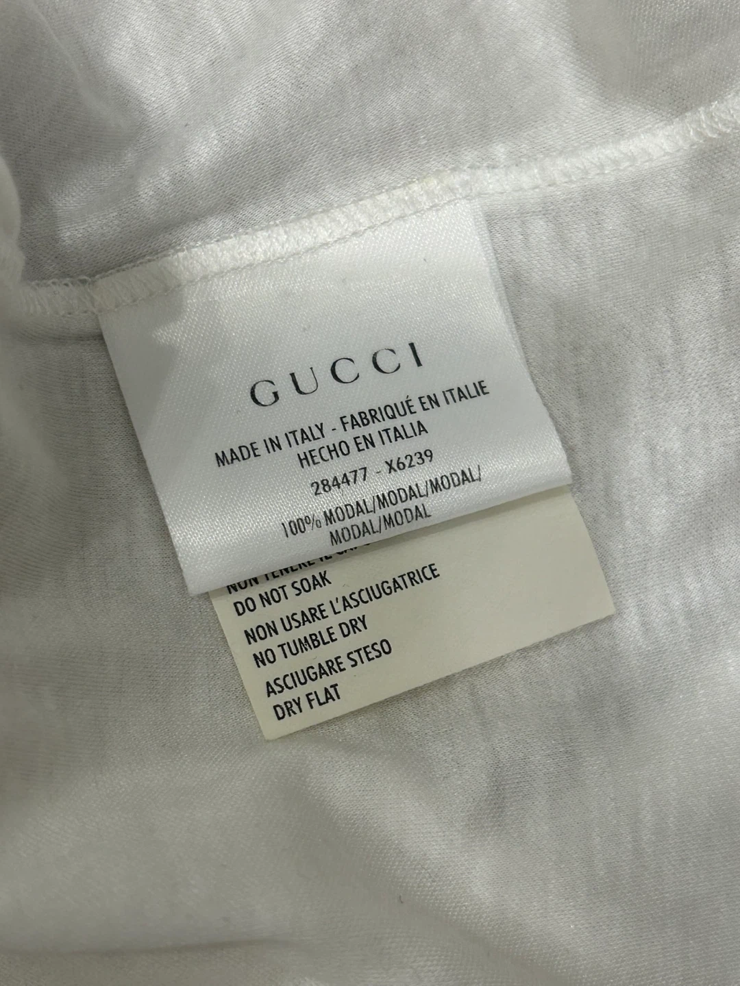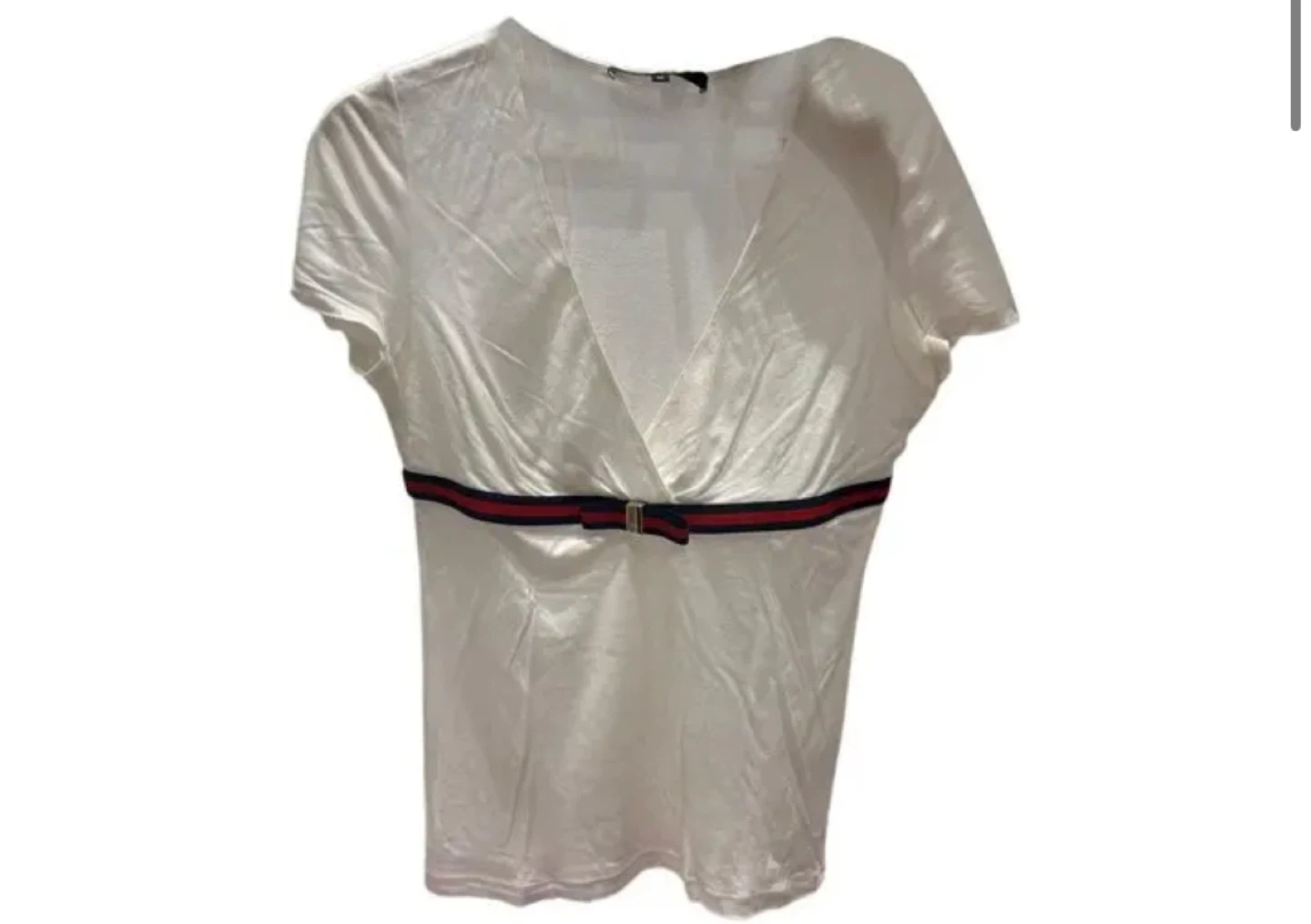 Selling a cute Gucci white t-shirt! It features a stylish ribbon detail. The size is S and it's made of 100% modal