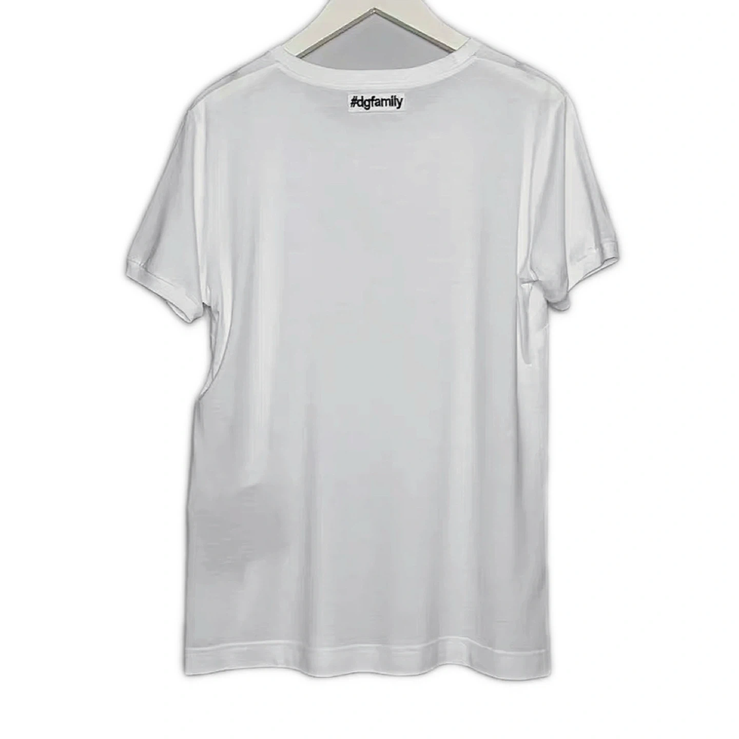 Brand new Dolce & Gabbana (dg) authentic men's and women's white crew neck short-sleeved T-shirt with distinctive heavy embroidery on the chest. Made of crystal beads and mulberry silk.