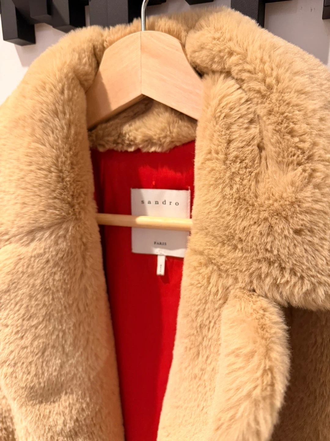 Selling a Sandro Paris faux fur coat! It's a beautiful, soft coat that's perfect for staying warm and stylish. The coat features a belt, allowing you to cinch the waist for a flattering silhouette. The red lining adds a pop of colour! Worn once so it’s almost brand new, but selling this because I got a real fur coat that looks very similar.
