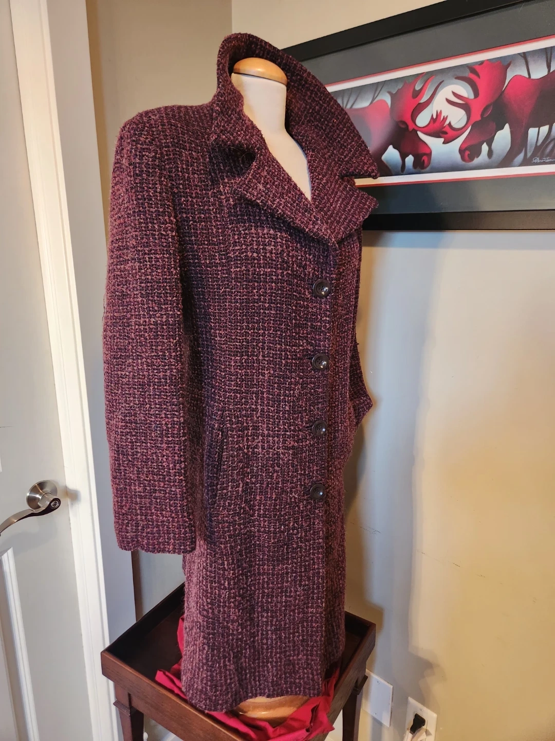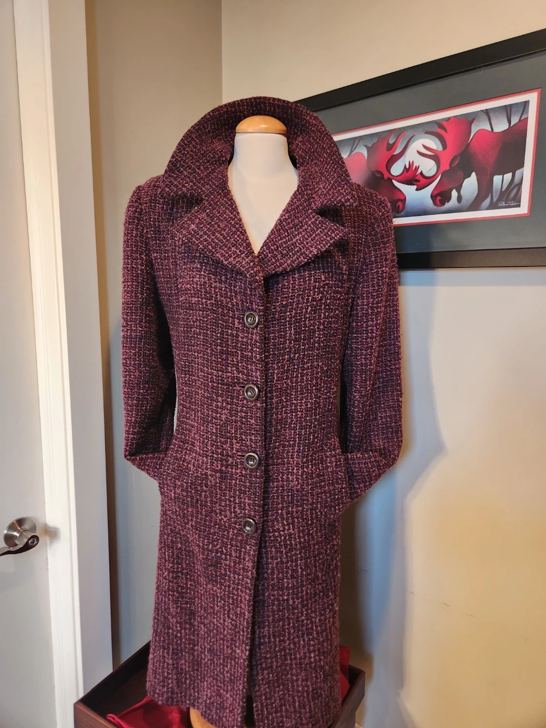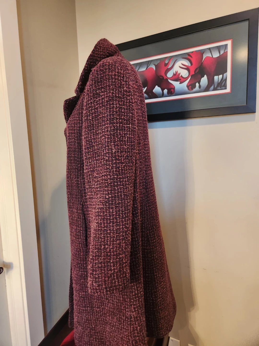 Selling a lovely vintage wool blend coat in a beautiful hues of purple, pink and burgundy tweed! Dress up jeans, leggings and skirts with this Smart looking wunter coat. A warm and stylish choice for any fashion lover. Size 12/16