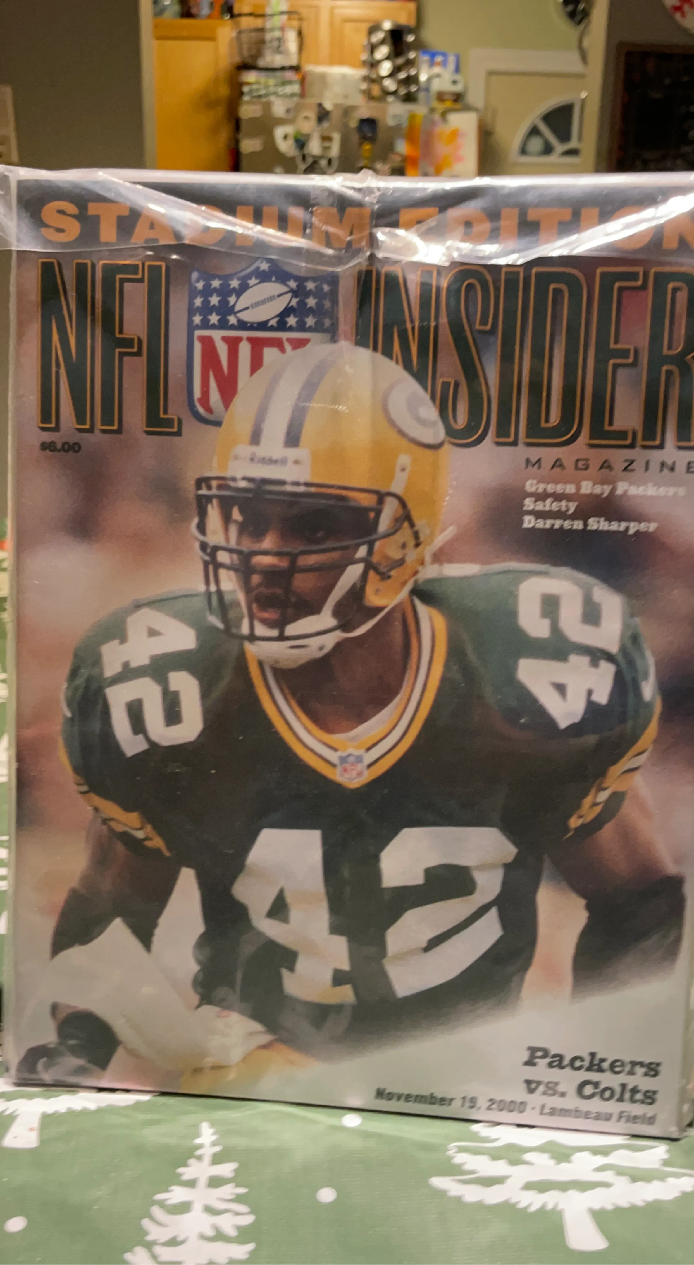 Selling a copy of NFL Insider magazine featuring the Green Bay Packers vs. Colts game from November 19, 2000. The magazine features Darren Sharper, a safety for the Packers. It originally sold for $6.00