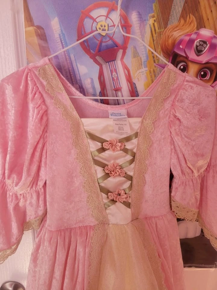 Make your little princess feel like royalty with this beautiful dress, perfect for Halloween or everyday wear. Made for 7-8 year olds, this stunning gown is sure to bring a touch of magic to any occasion.