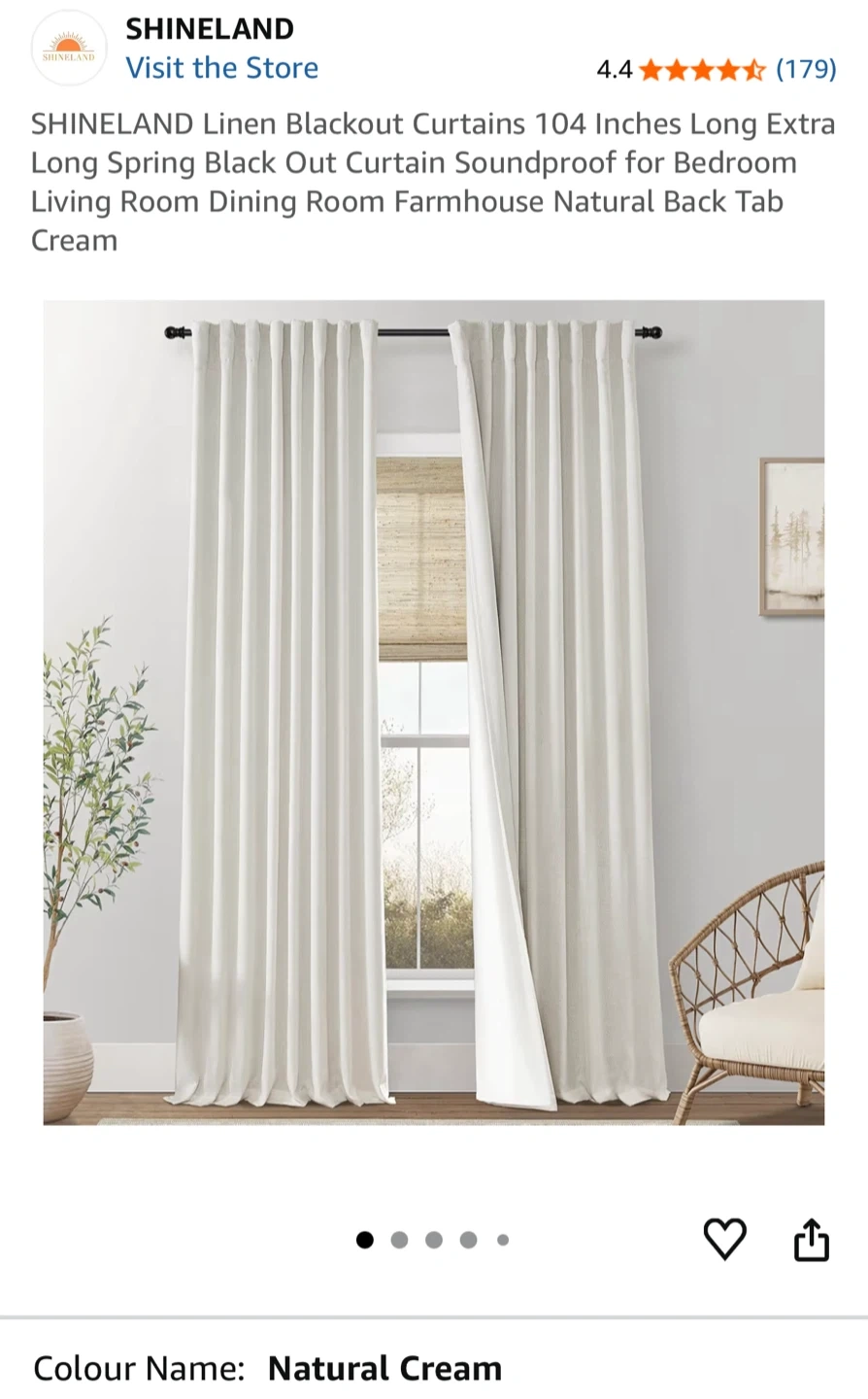 - 102 inch curtains in shades natural (semi sheer) & natural cream colour (blackout)