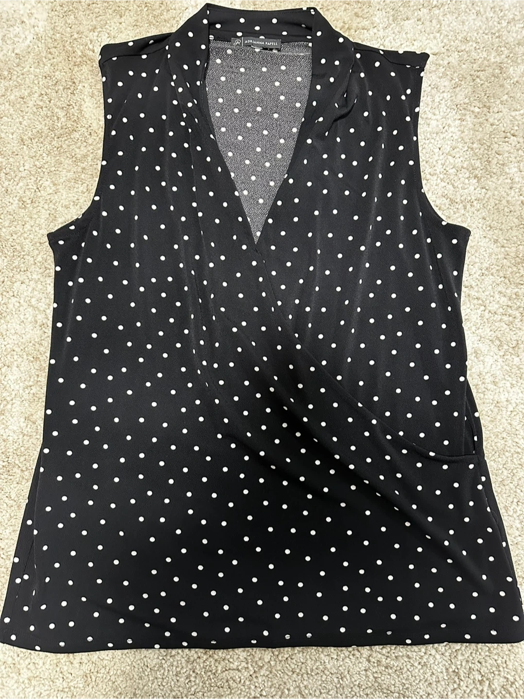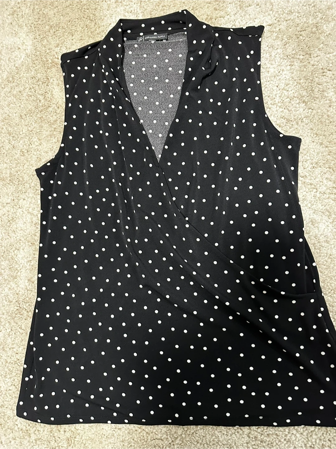 Adrianna Papell Black Polka Dot Sleeveless Top