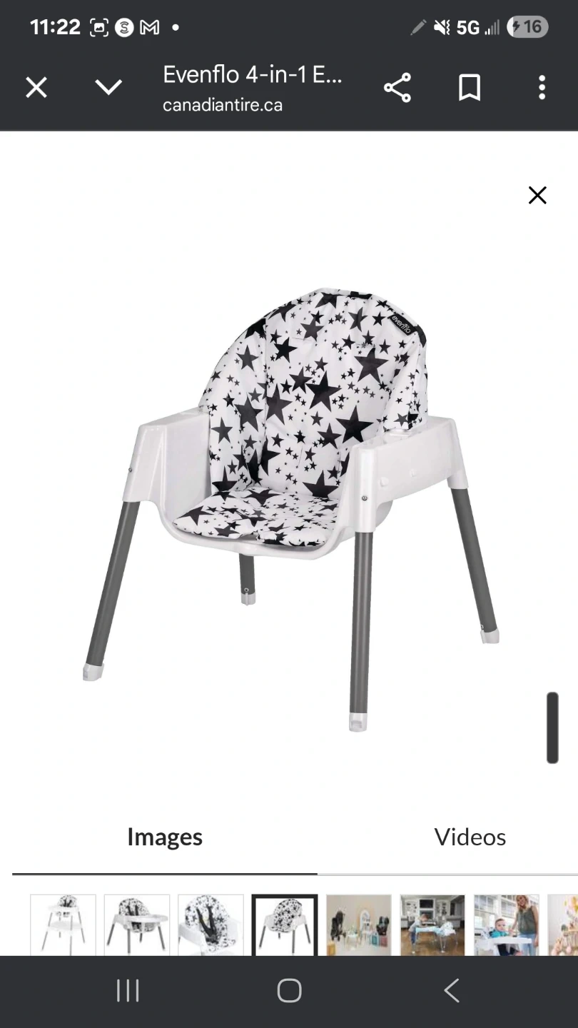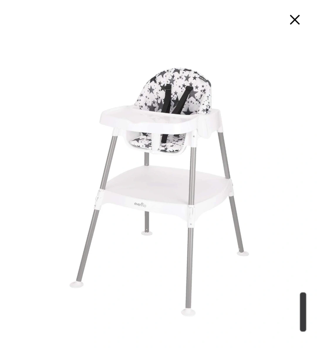 This Evenflo 4-in-1 Eat & Grow Convertible High Chair is perfect as your little one grows! It easily converts from a high chair to a toddler-sized table and chair set. The seat pad is machine washable for easy cleaning. Recommended age range is from 6 months and up