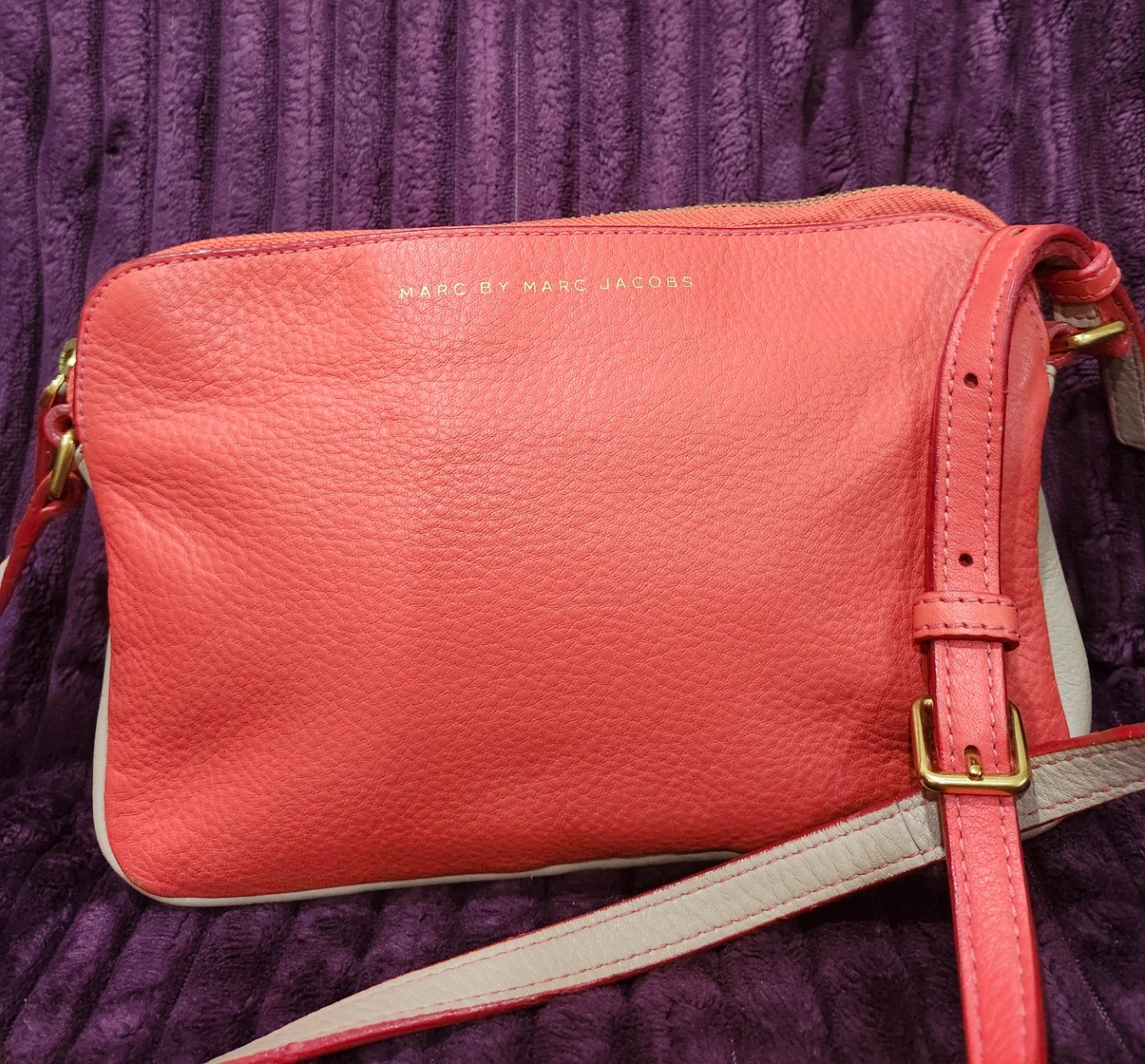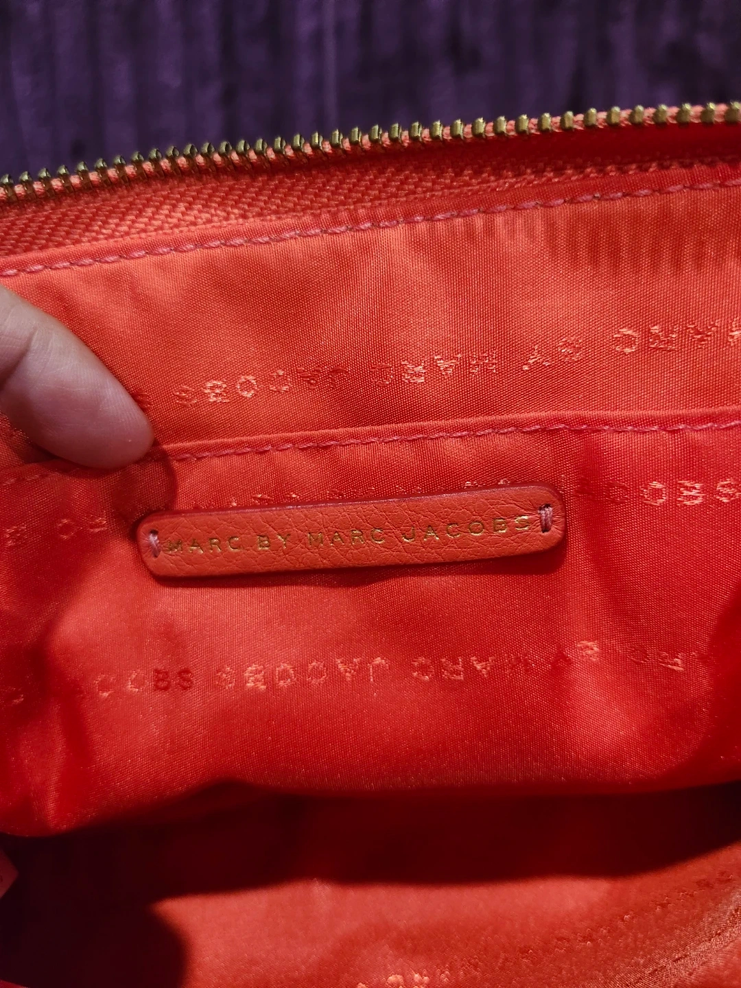 Selling a cute Marc by Marc Jacobs crossbody bag! It's in good condition and perfect for everyday use. The bag features a vibrant orange interior and a stylish design.