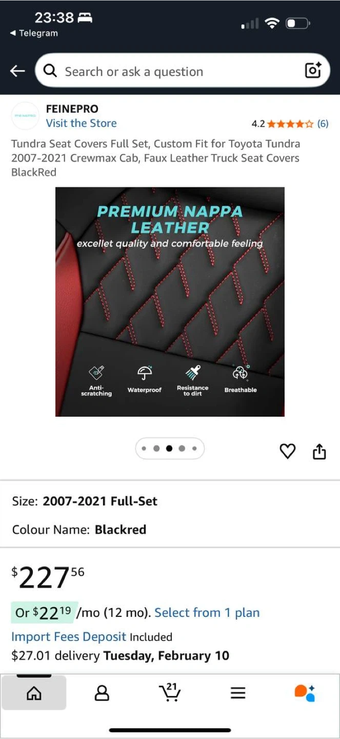 FEINEPRO Toyota Tundra Seat Covers 2007–2021 — Black/Grey — NEW