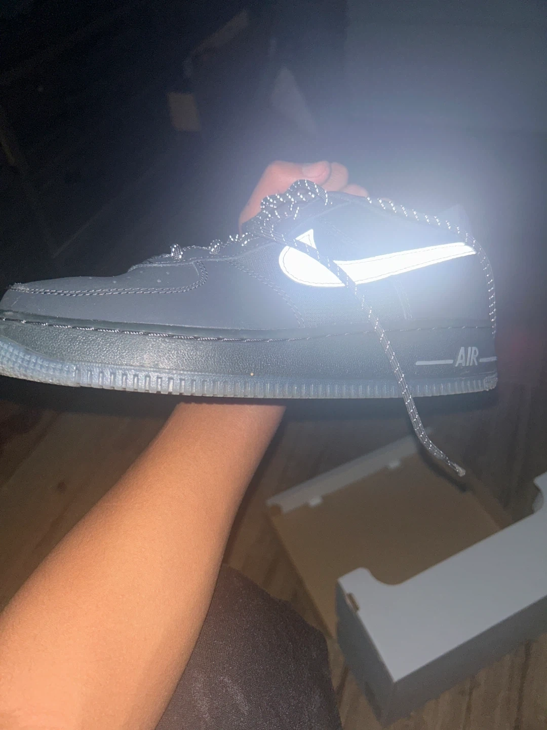 Selling a pair of Nike Air Force 1s in black with reflective details. These shoes are in great condition and come with the original box. The iconic design and comfortable fit make them a great addition to any wardrobe! Pick up only!!!!‼️
