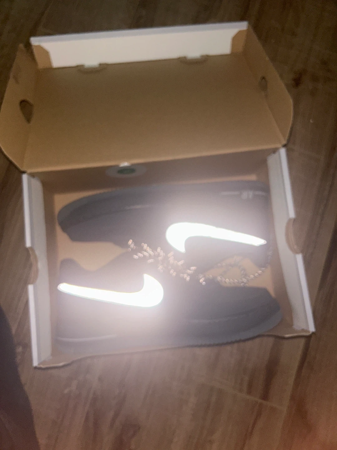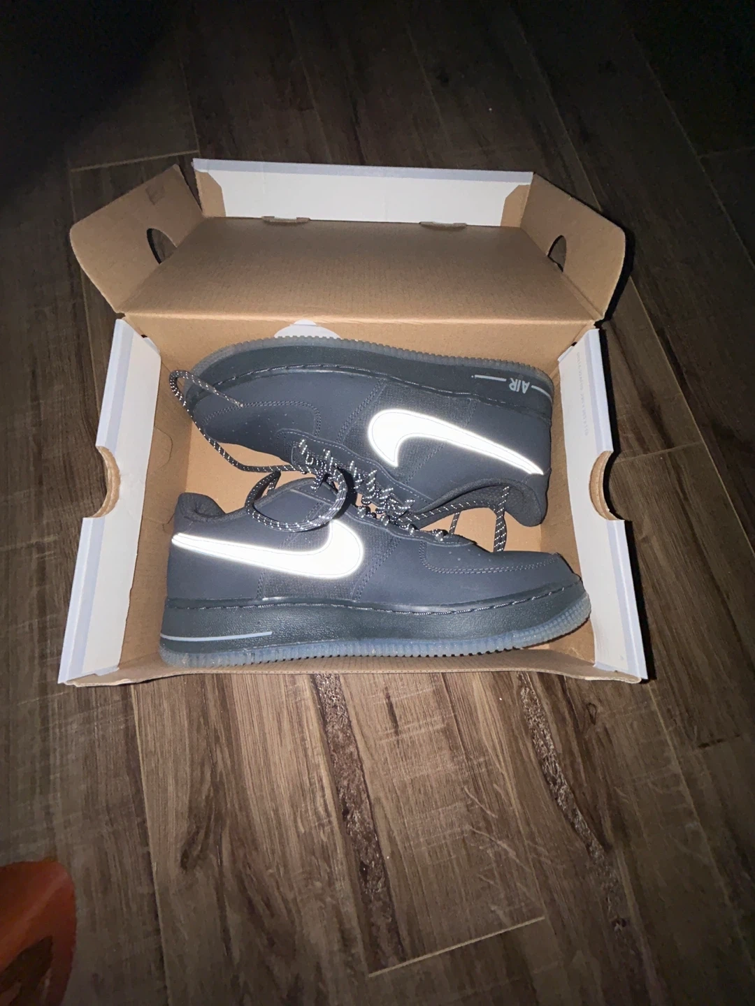 Selling a pair of Nike Air Force 1s in black with reflective details. These shoes are in great condition and come with the original box. The iconic design and comfortable fit make them a great addition to any wardrobe! Pick up only!!!!‼️