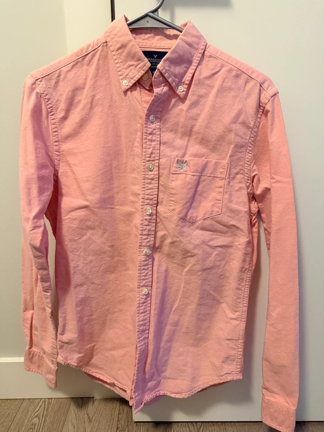 American Eagle Outfitters slim fit shirt in size XS. It's a light pink colour and in great condition!