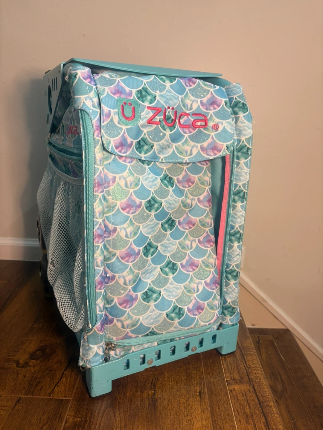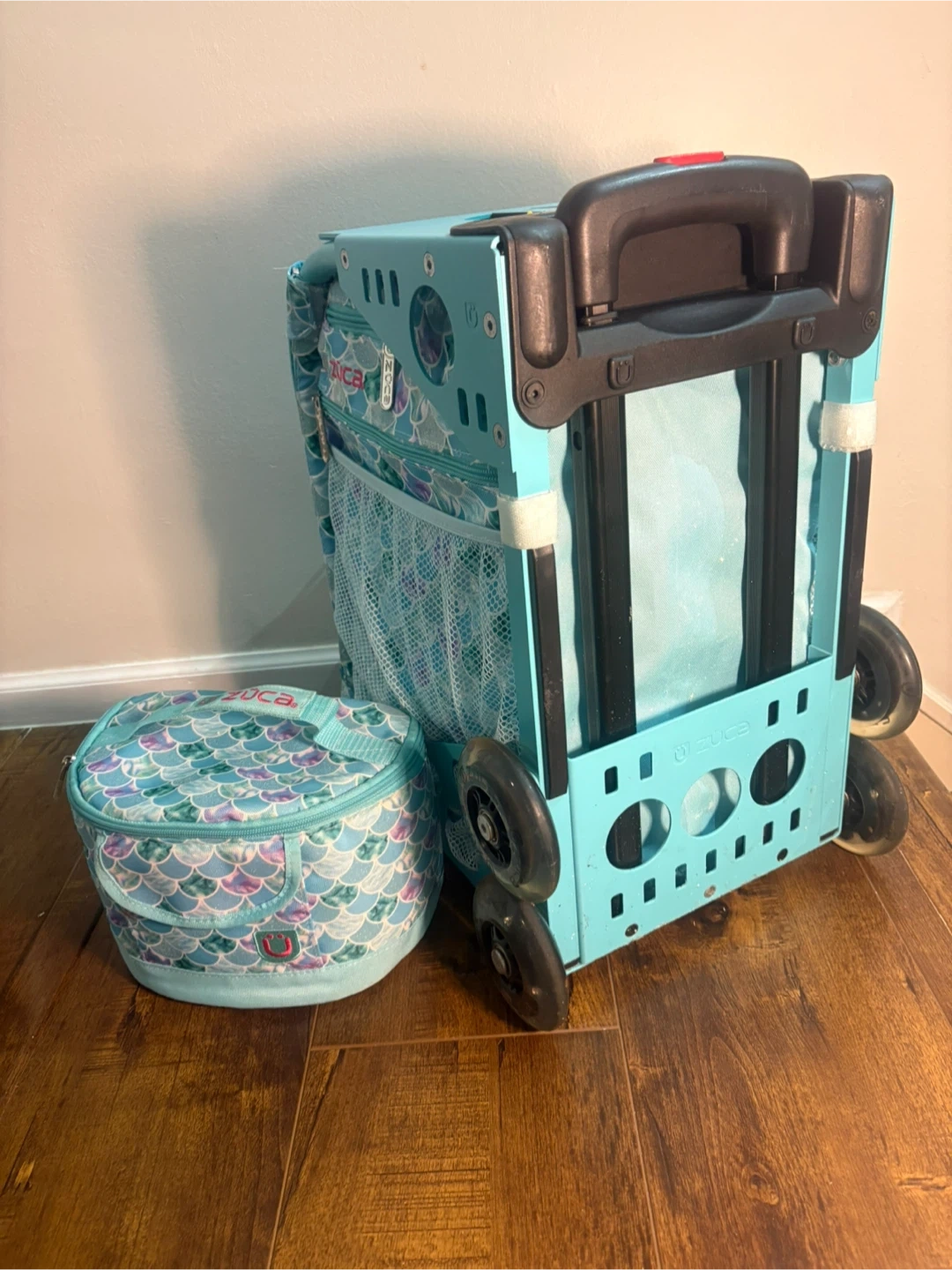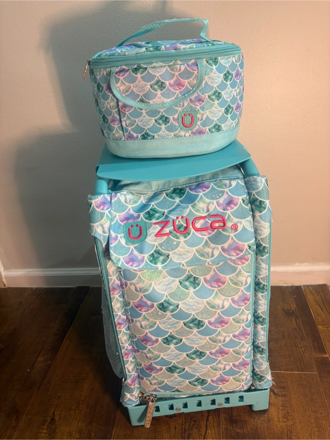 Selling a Zuca rolling backpack with a matching lunchbox in the Mermaid Dreams pattern! This set is perfect for school, travel, or any activity where you need to keep your belongings organized and easy to transport. The backpack has plenty of storage space, and the lunchbox is insulated to keep food fresh. It's in great condition and ready for its next adventure!