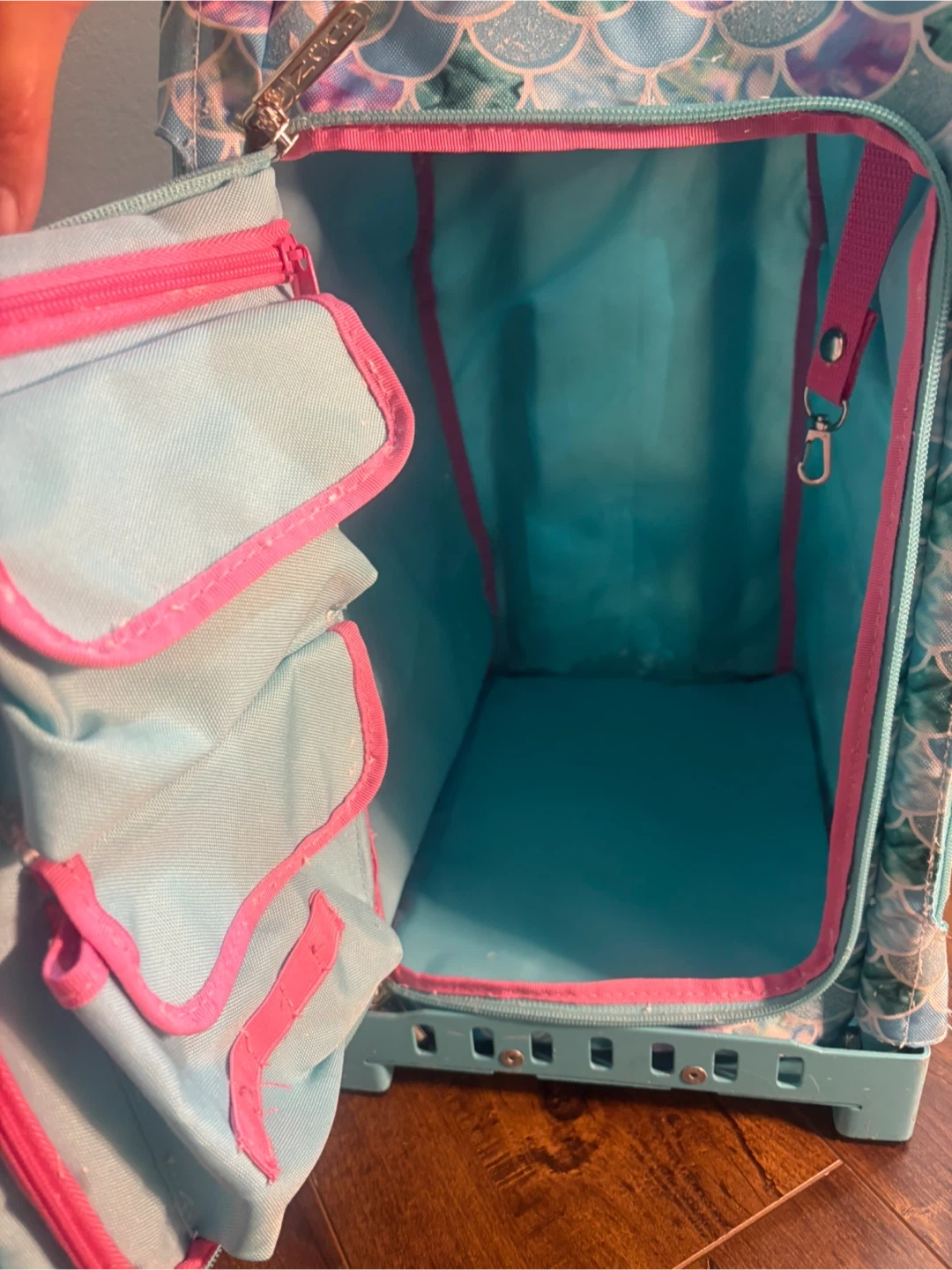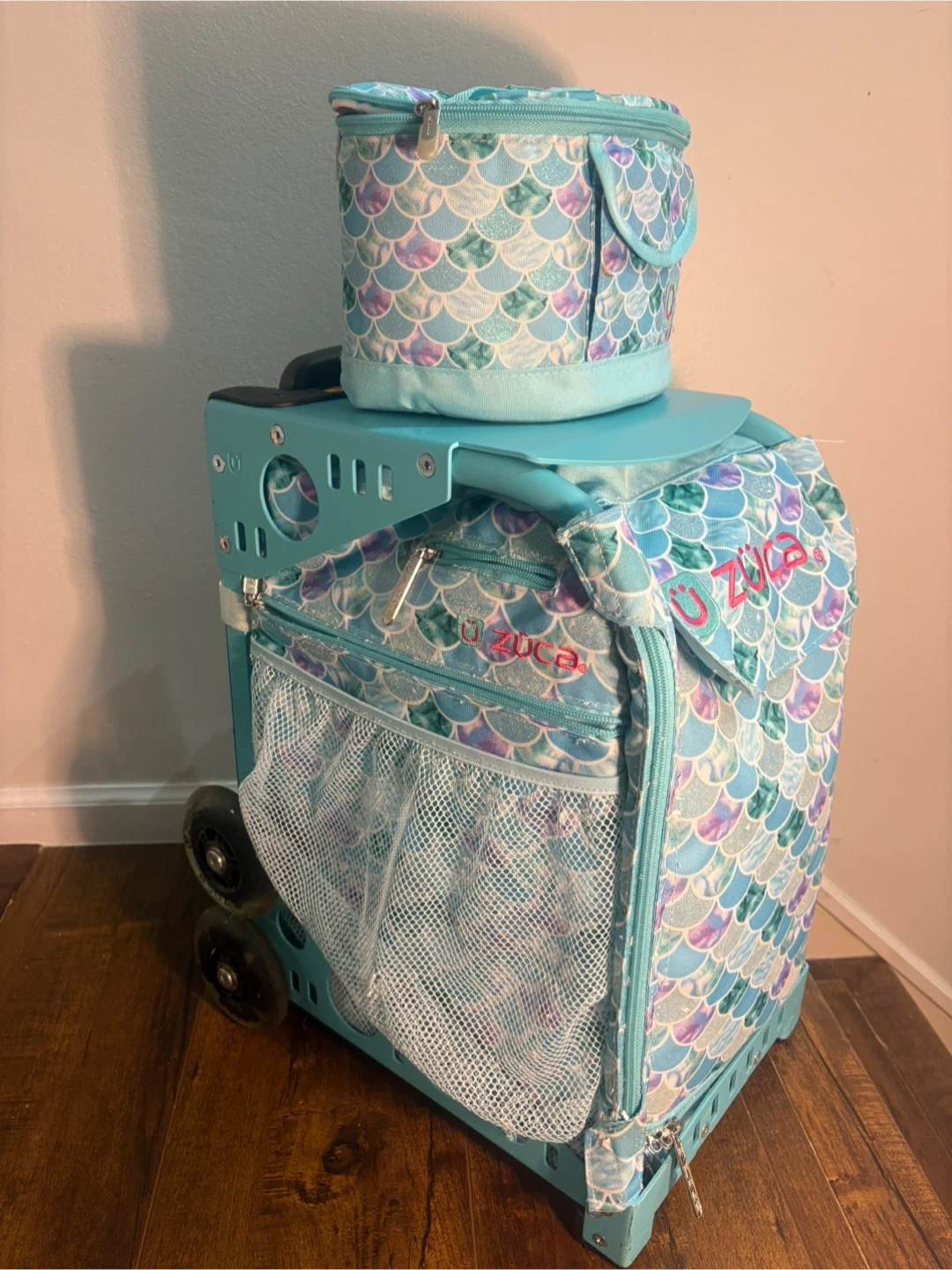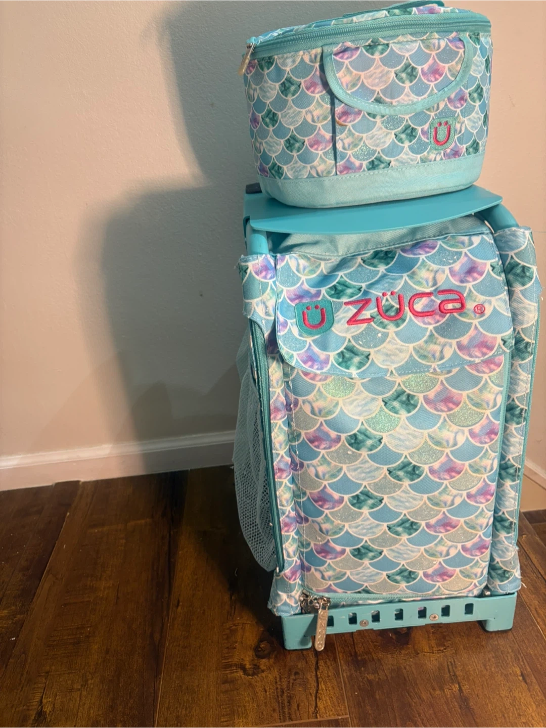 Selling a Zuca rolling backpack with a matching lunchbox in the Mermaid Dreams pattern! This set is perfect for school, travel, or any activity where you need to keep your belongings organized and easy to transport. The backpack has plenty of storage space, and the lunchbox is insulated to keep food fresh. It's in great condition and ready for its next adventure!