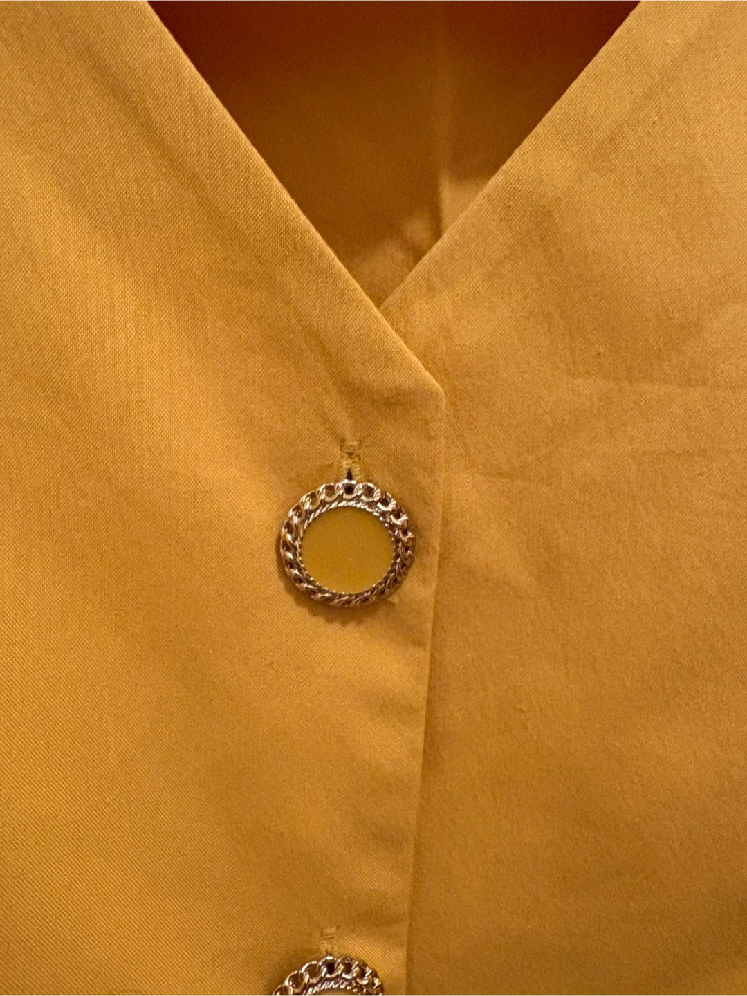 A lovely yellow blouse from magjay! The blouse features unique decorative buttons. It's in great condition and ready for a new wardrobe
