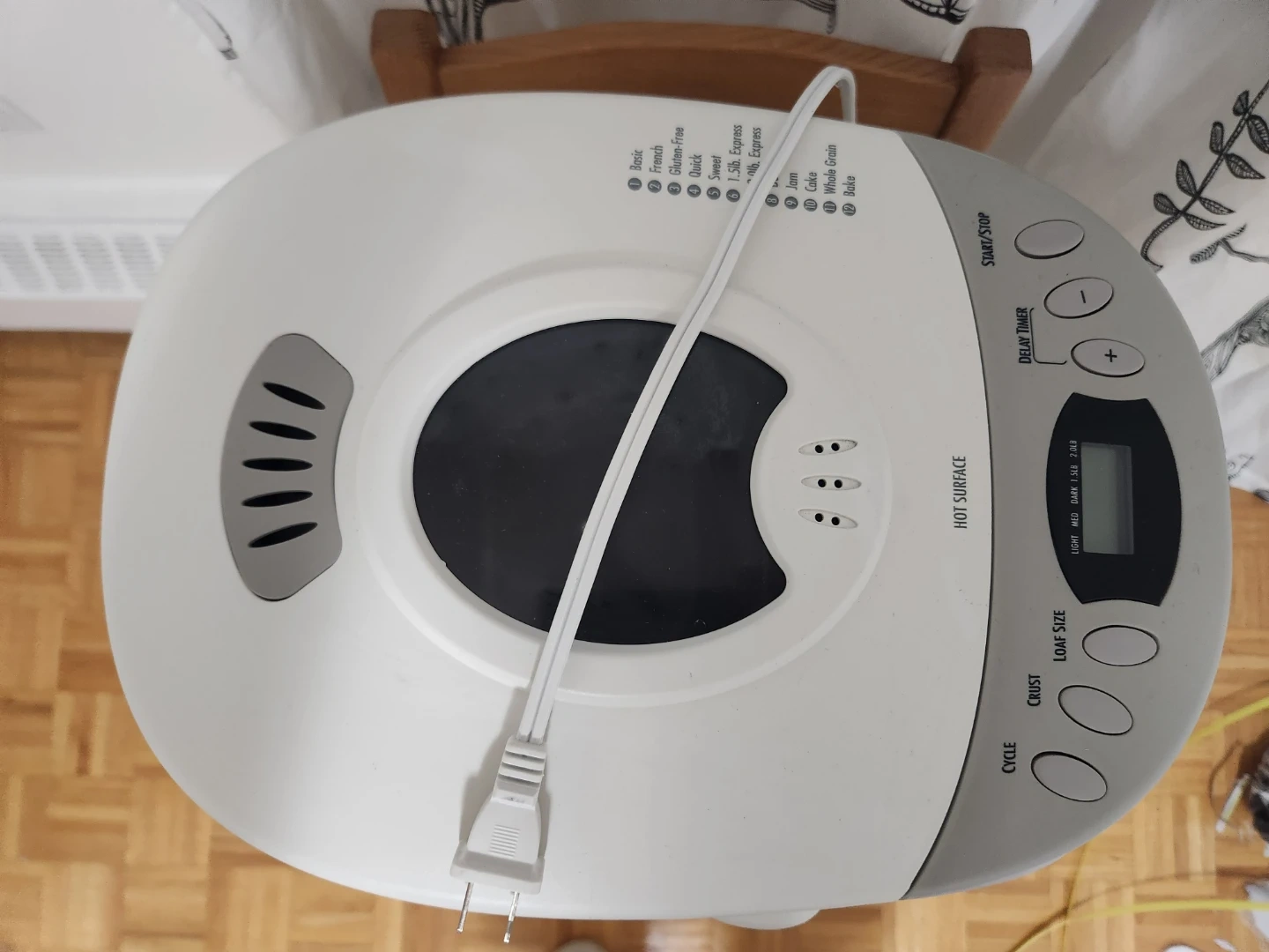 Selling a Hamilton Beach HomeBaker breadmaker! It's in great condition and comes with the original box. It makes up to a 2 lb loaf and has 12 cycles including gluten-free and French bread options. Perfect for making homemade bread without preservatives or trans fats!