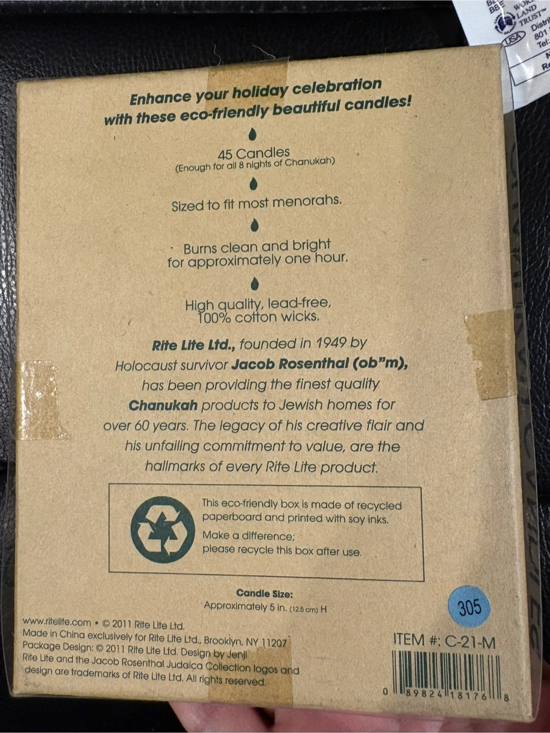 Enhance your holiday celebration with these eco-friendly beautiful candles! This is a pack of 27 Rite Lite Chanukah candles. They are premium hand-dipped, pure, natural beeswax candles. Sized to fit most menorahs. They burn clean and bright for approximately one hour. High quality, lead-free, 100% cotton wicks. Candle size: Approximately 5 in (12.5 cm) H