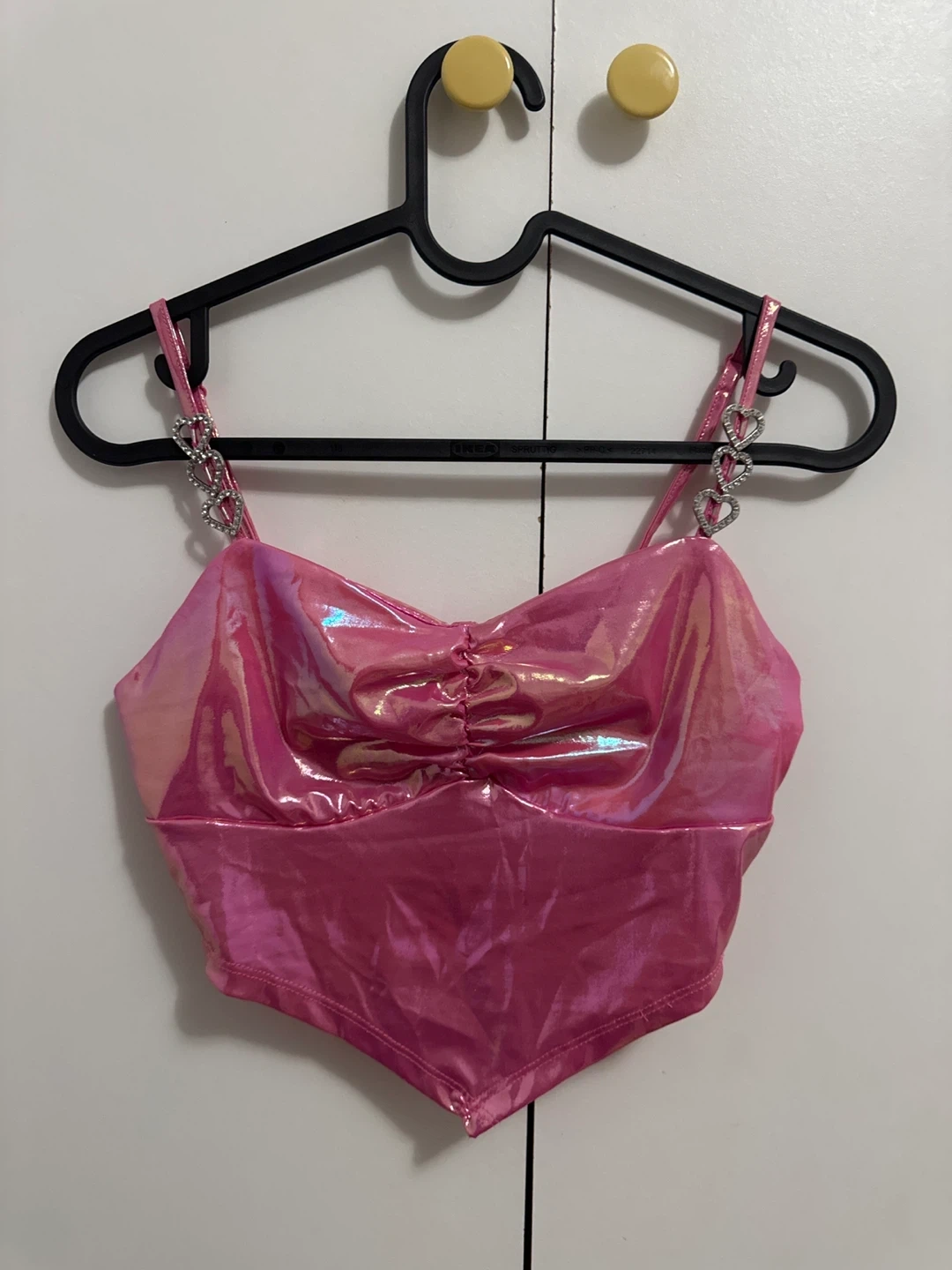Selling a cute Shein pink holographic ruched mini skirt. Great for parties or concerts! It's in excellent condition and ready for a new owner.