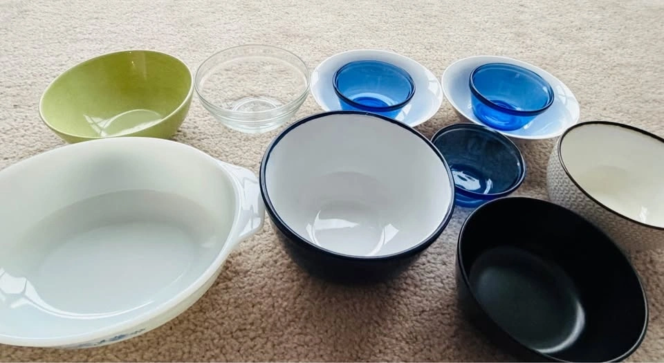 11 glass bowls in small, medium & large sizes