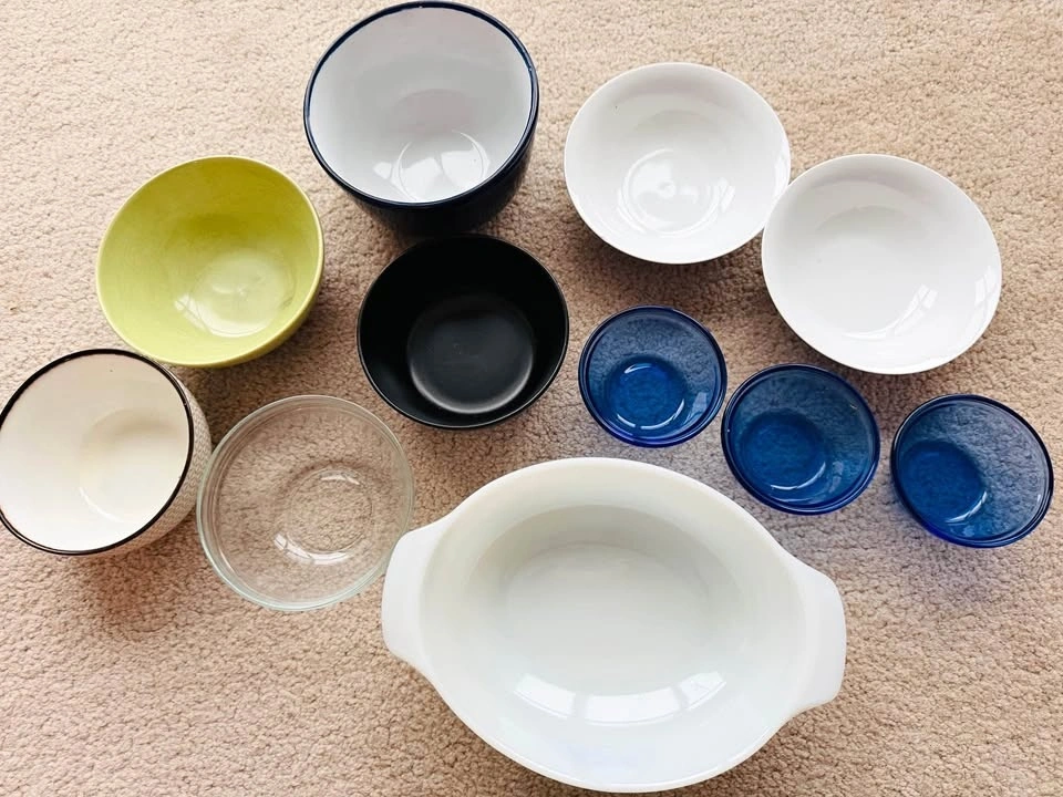 11 glass bowls in small, medium & large sizes