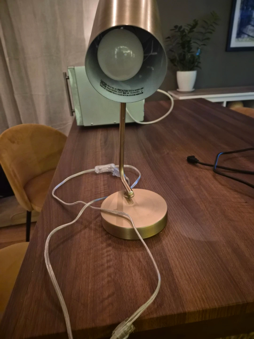 Selling a stylish gold desk lamp. It's in great condition and would look great on any desk or side table. It has a nice, modern design and provides a good amount of light for reading or working