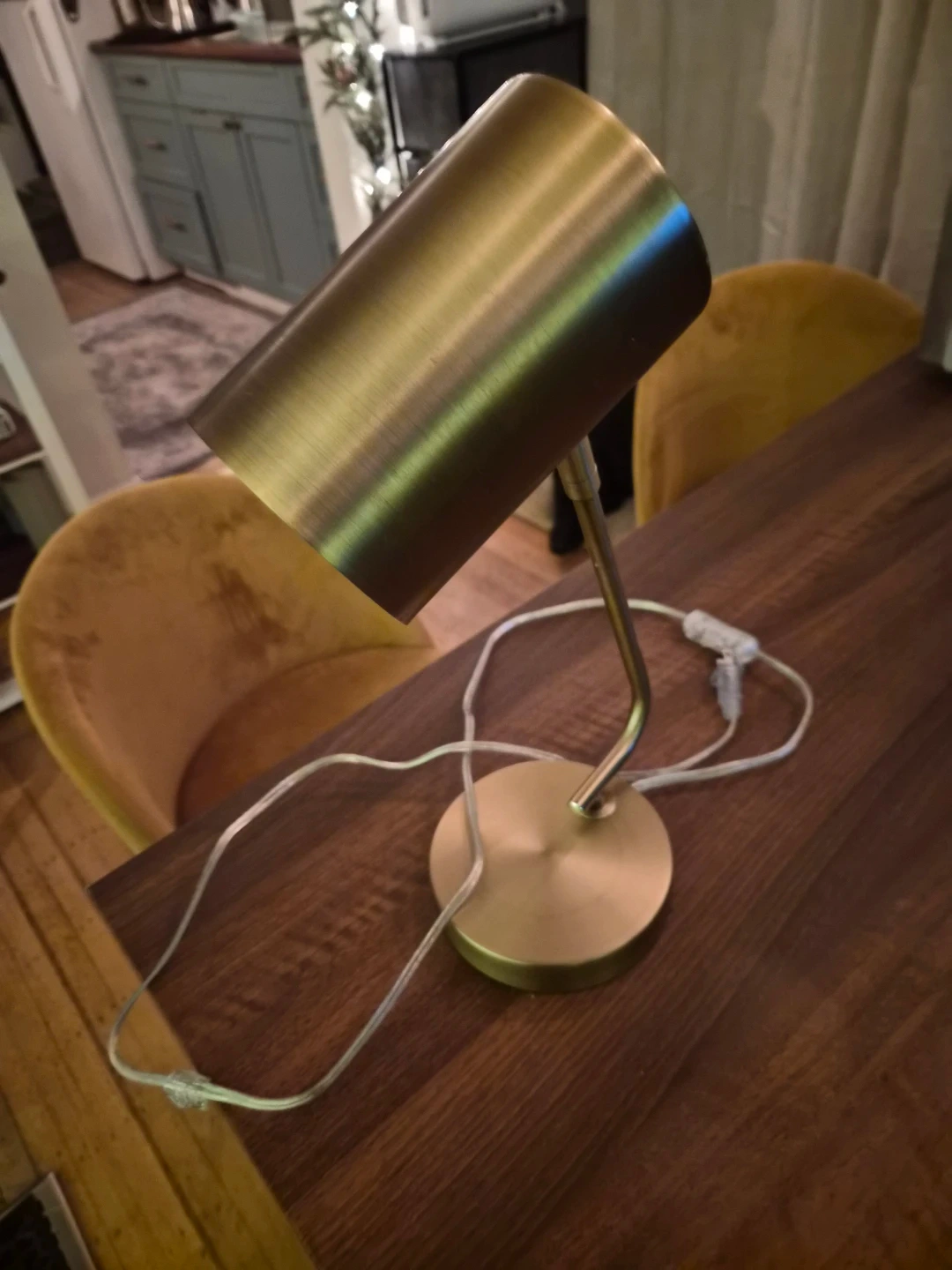 Selling a stylish gold desk lamp. It's in great condition and would look great on any desk or side table. It has a nice, modern design and provides a good amount of light for reading or working