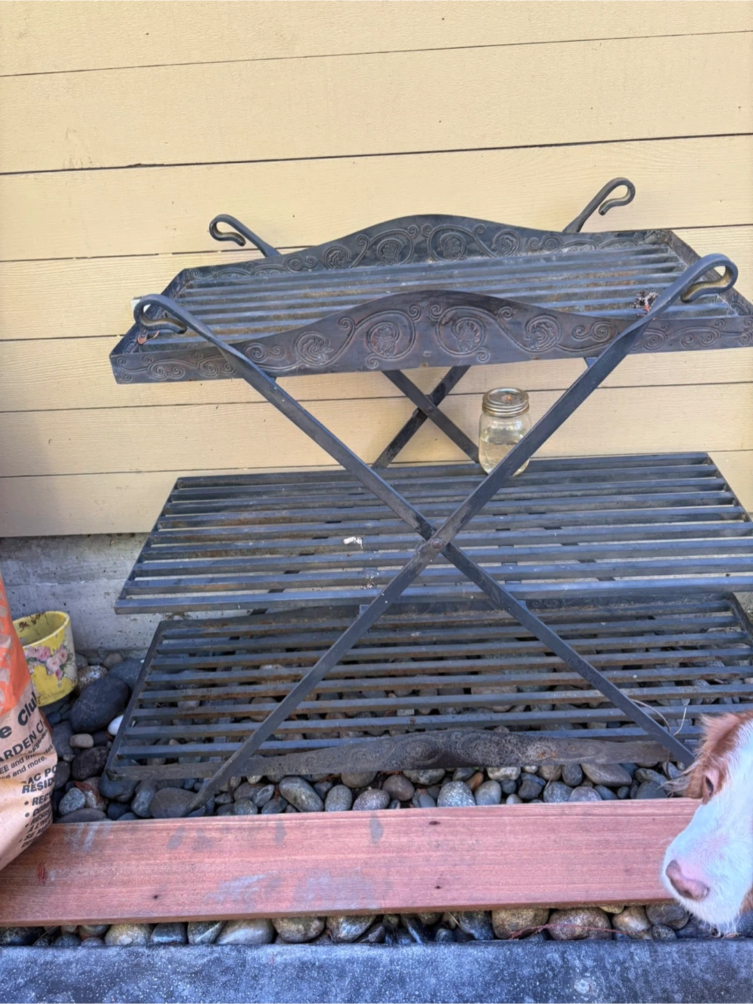 Selling a metal plant stand. It has a nice design and could be great for your plants. 3 separate shelves that can be removed and stand then folds up for storage.