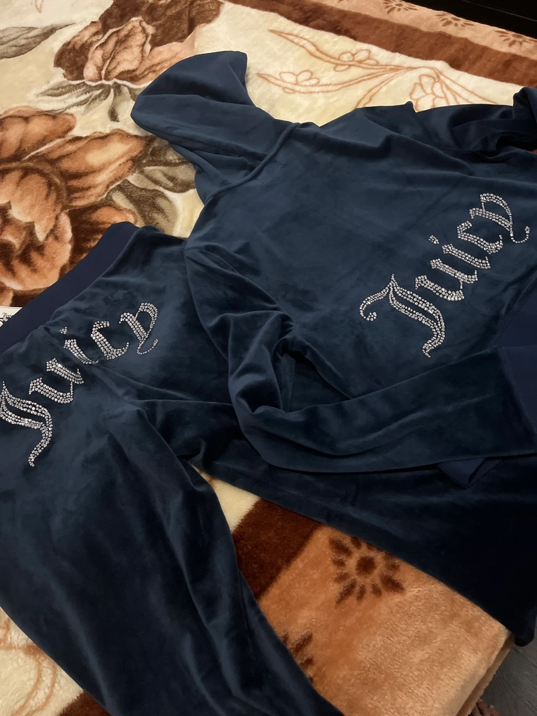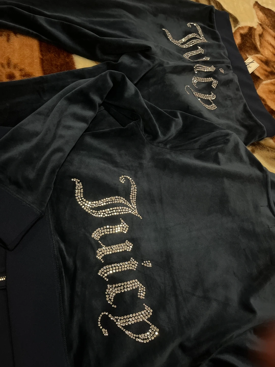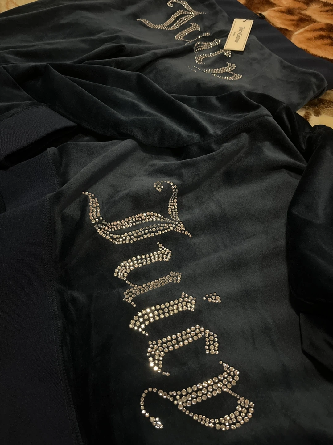 Selling a super comfy Juicy Couture velour tracksuit! It's a stylish and cozy set, perfect for lounging or running errands. The material is soft and plush, and the rhinestone detailing adds a touch of glam to the classic tracksuit look! Mint Condition never worn.