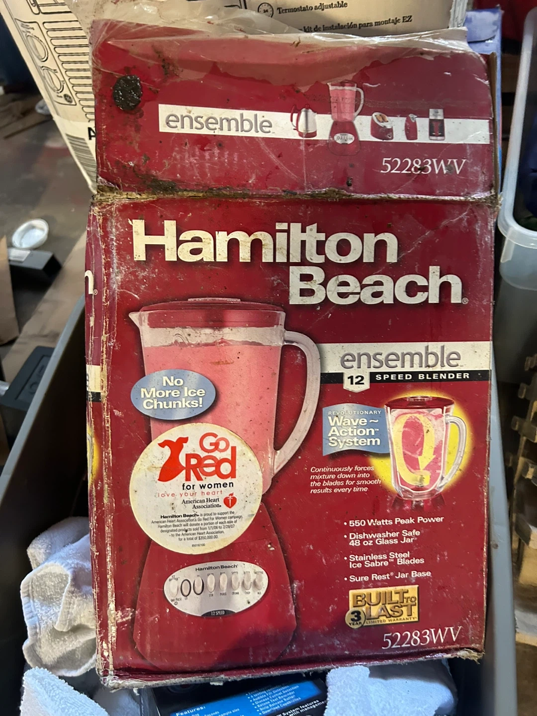 Selling a Hamilton Beach Ensemble 12-Speed Blender! It features a revolutionary wave-action system that continuously forces the mixture down into the blades for smooth results every time. It also has a 550 Watts Peak Power and a dishwasher-safe 48 oz Glass Jar. Stainless Steel Ice Sabre Blades and a Sure Rest® Jar Base are included!
