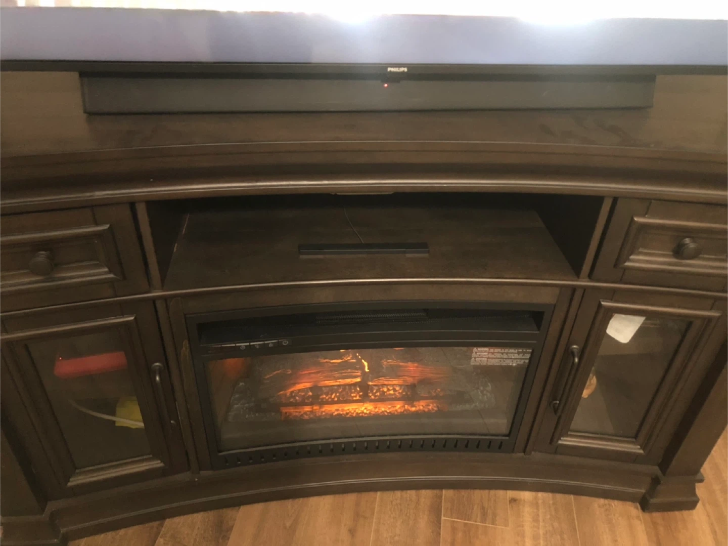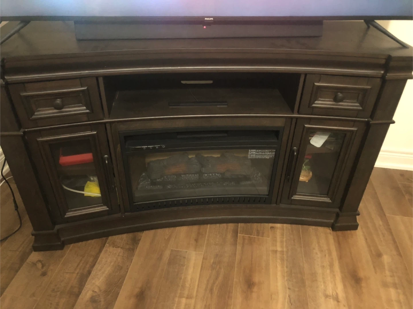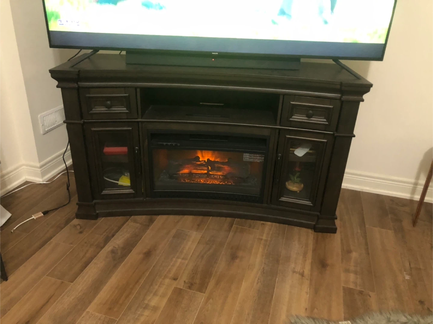Selling a TV stand with an electric fireplace insert. It's in very good condition and adds a cozy touch to any living room. Perfect for those chilly evenings!