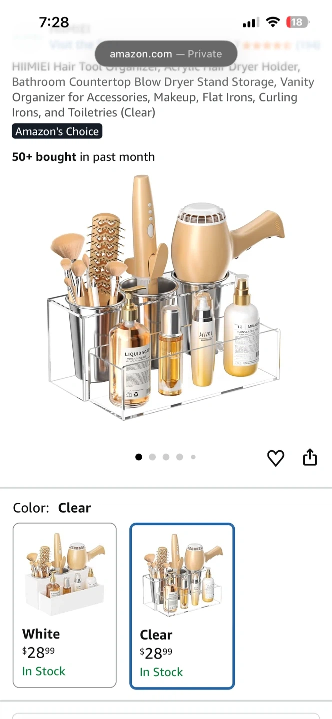 Selling a HiiMEEI clear acrylic hair tool organizer. It's perfect for keeping your bathroom countertop neat and tidy. It can hold a hair dryer, makeup, flat irons, curling irons, and other toiletries. The organizer is in great condition and ready for a new home!