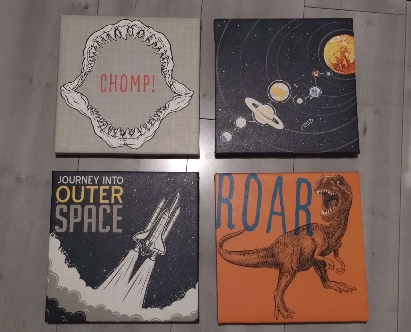 Selling a set of four canvases perfect for a kid's room or playroom! The set includes: