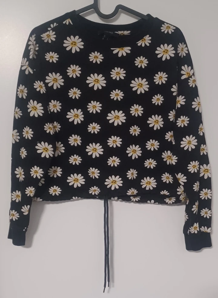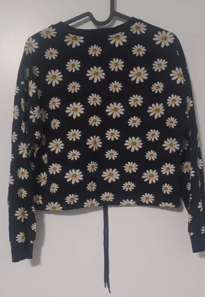 Selling a cute Forever 21 sweatshirt with an all-over daisy print! It's a size small and in great condition. The sweatshirt is black with white and yellow daisies all over. Perfect for adding a bit of cheer to your wardrobe!