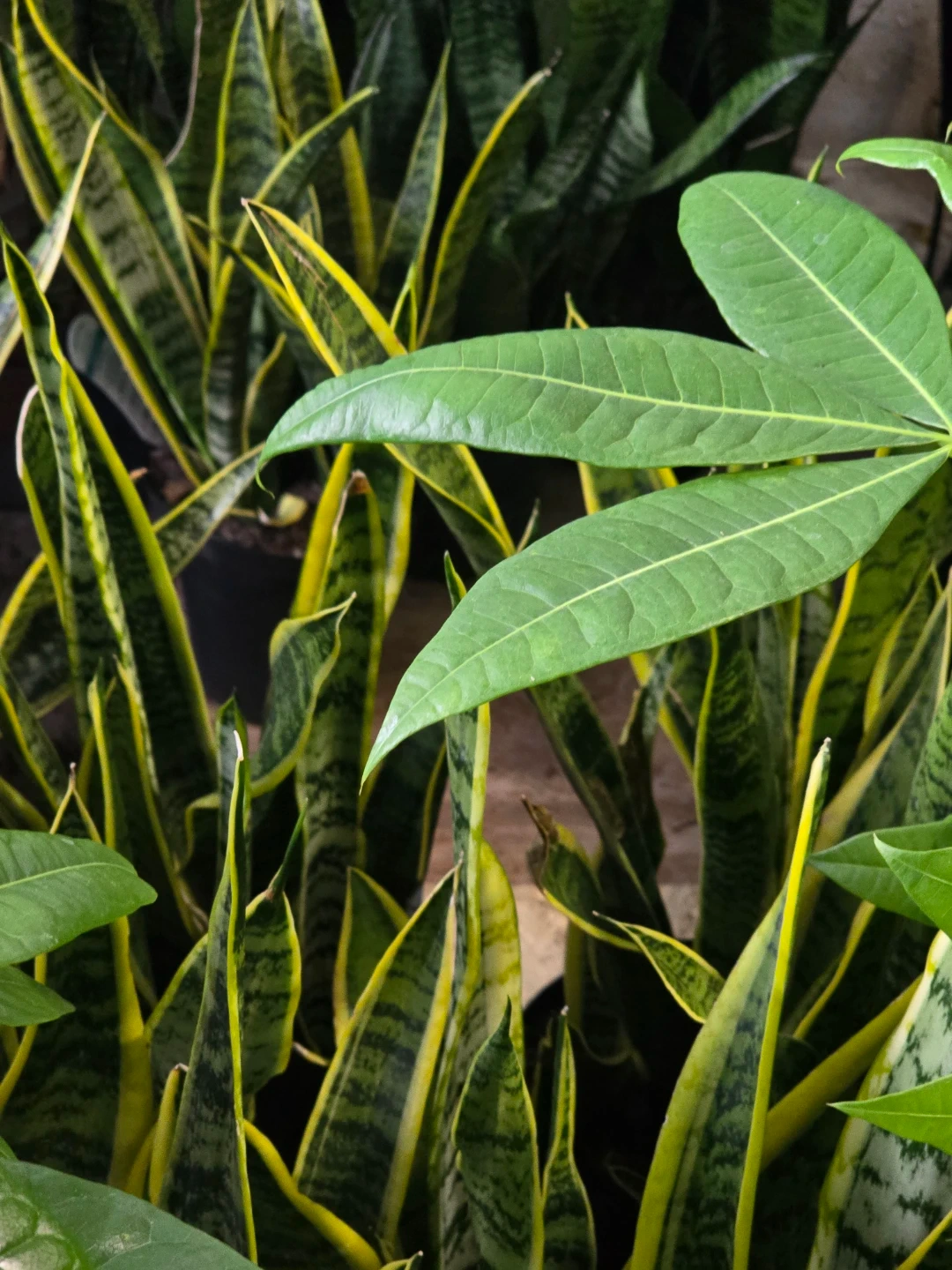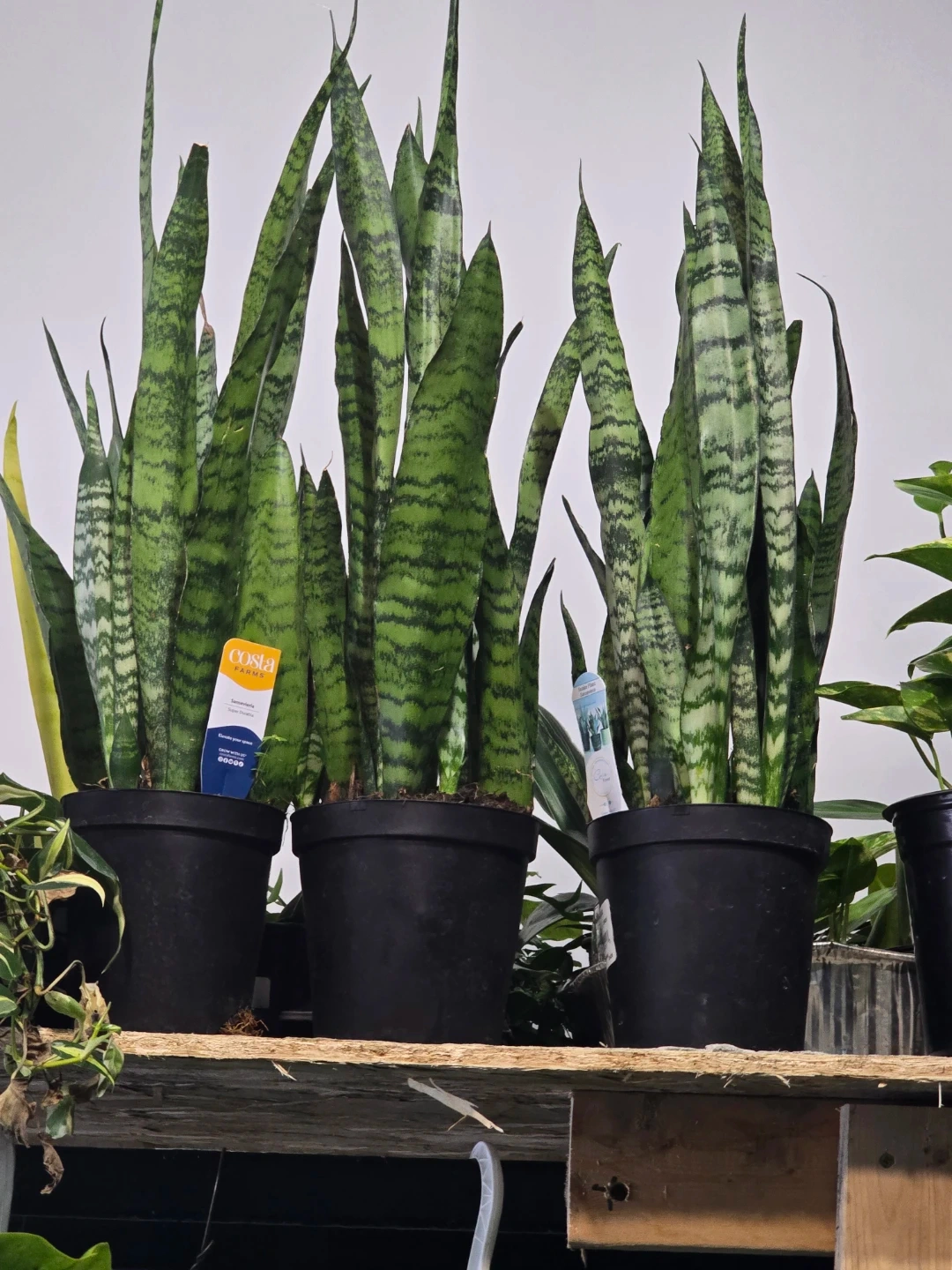 Selling a Costa Farms snake plant. The plant is green and yellow and comes in a black pot. It's a great way to add some greenery to your home!