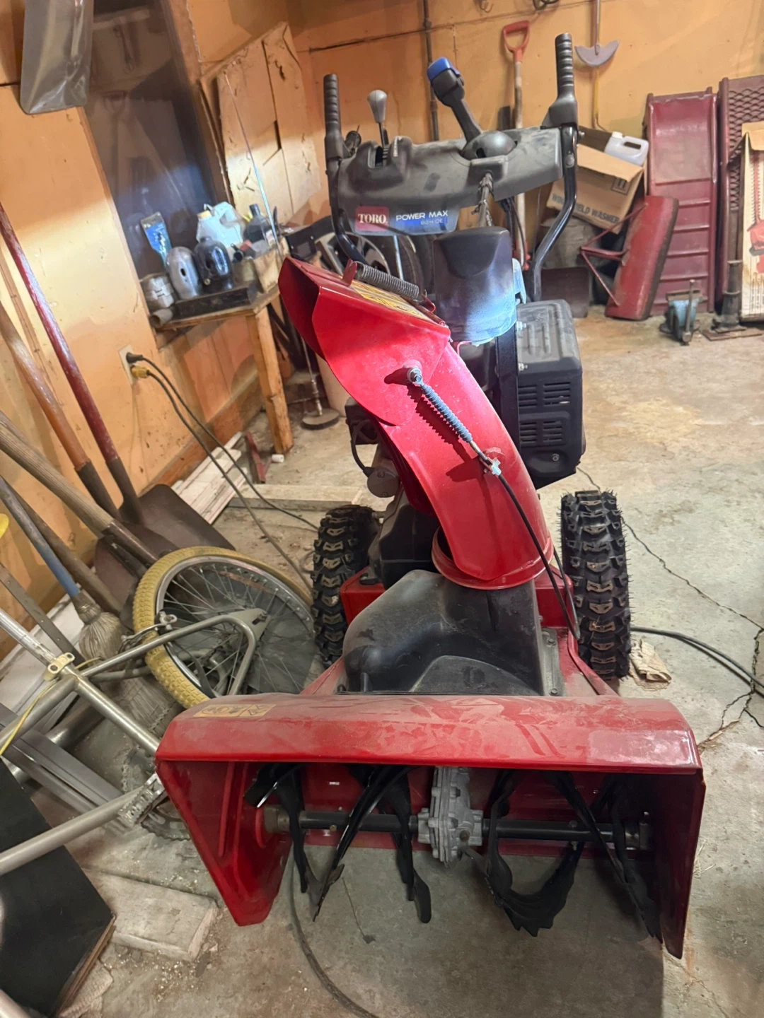 Selling a Toro Power Max 824 OE snowblower. It's ready to help you tackle those snowy days! It has a red and black finish and is in good working condition.