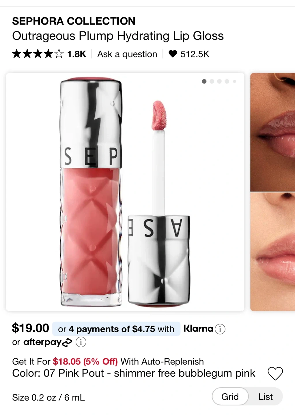Buy & SellSephora Outrageous Plump Hydrating Lip Gloss - PinkSephora Outrageous Plump Hydrating Lip Gloss - Pink$14only used twice final sale cash preferredConditionLike newBrandSephoraWHERE TO MEETKennedy StationView MapSELLERmichelleKennedy Park312 reviews1 chats·0 favorites·22 viewsSEND CHAT TO SELLERHi michelle! I’m interested in your listing.Hi michelle! I’m interested in your listing.Get the Karrot app to chatSign In to chat