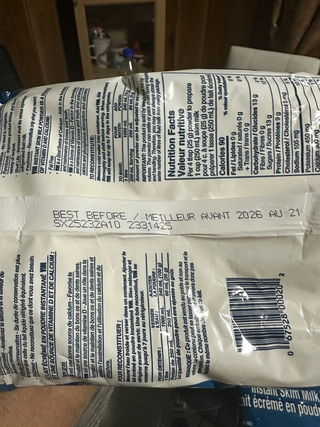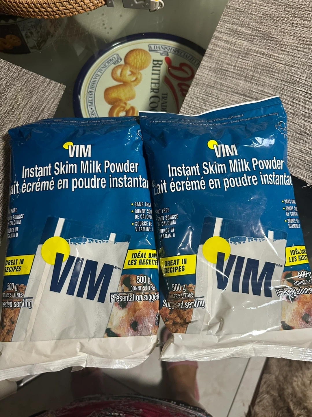 Selling two bags of Vim Instant Skim Milk Powder. Each bag contains 500g of powder. The expiration date is August 2026. Perfect for adding calcium and Vitamin D to your diet!