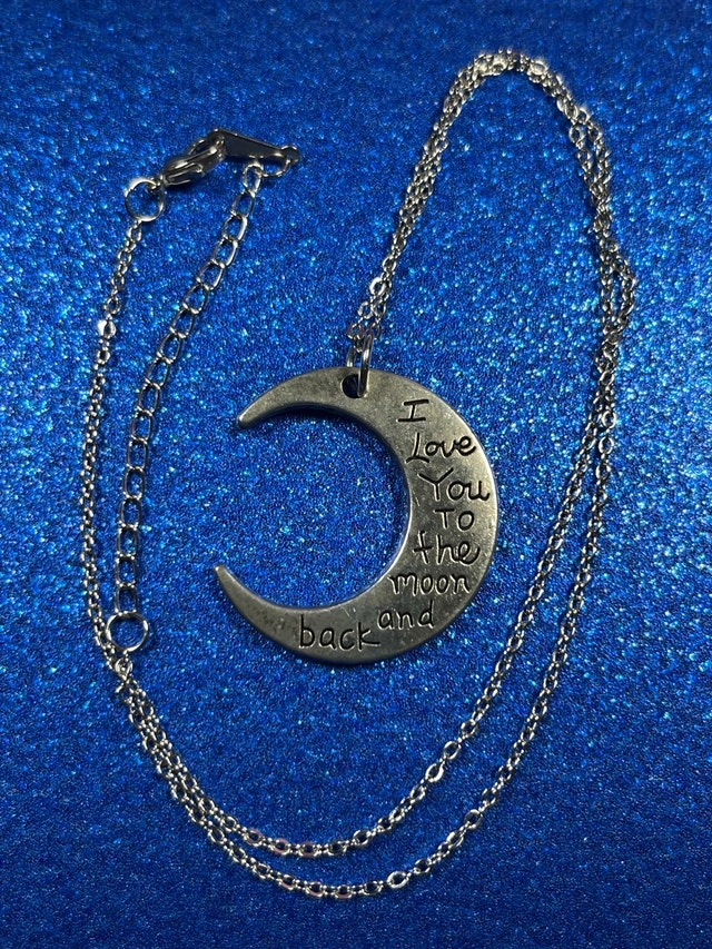 Buy & SellI Love You to the Moon and Back NecklaceI Love You to the Moon and Back Necklace$5This is a 'I Love You to the Moon and Back' necklace Condition: Used - Good For Sale By: Owner Jewellery Type: Necklaces Cash accepted: YesWHERE TO MEETHeritage Hills plaza parking lot.View MapSELLERverifiedTonyHurontario942 reviews0 chats·0 favorites·2 viewsSEND CHAT TO SELLERHi Tony! I’m interested in your listing.Hi Tony! I’m interested in your listing.Get the Karrot app to chatSign In to chat