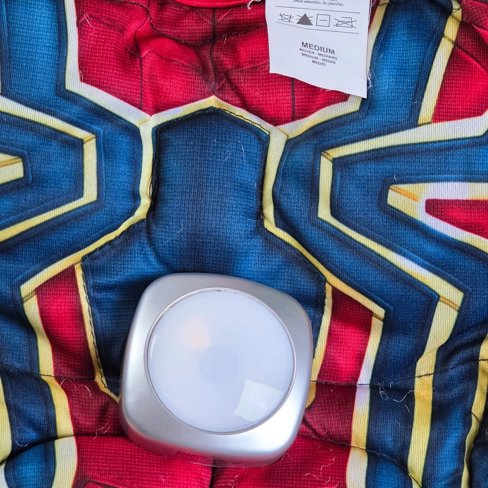 Marvel Avengers Infinity War Iron-Spider Spiderman Boys Superhero Halloween Costume Deluxe. The chest illuminates, takes 3 AAA batteries.