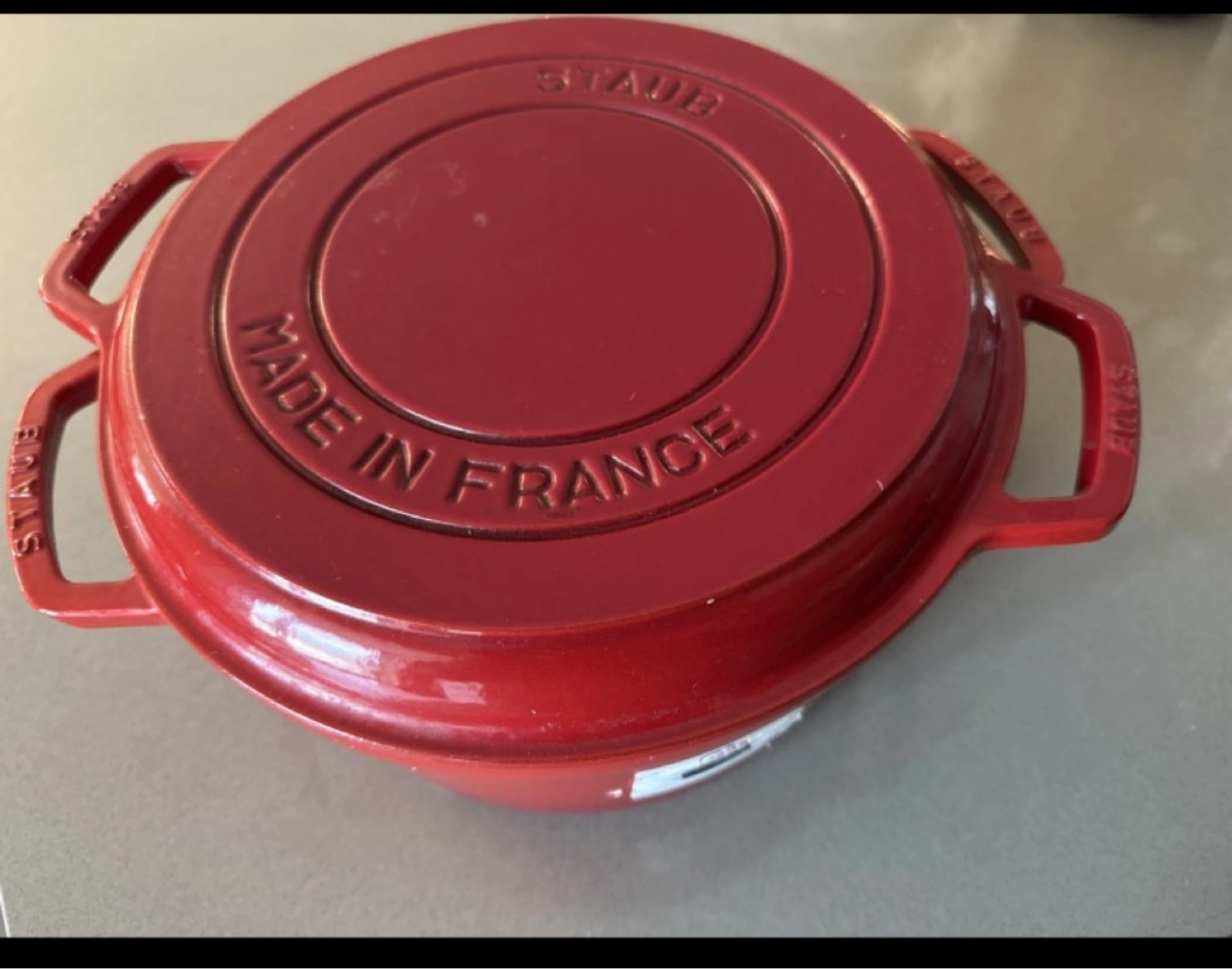 Selling a Staub Dutch oven with a grill lid. It's in good condition and ready for your next culinary adventure! This set is perfect for slow cooking, braising, roasting, and grilling. The Dutch oven is a vibrant red colour and is made in France.