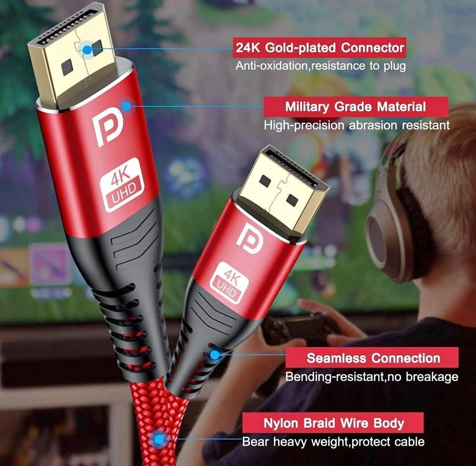 4K DisplayPort Cable 16ft, sweguard DP 1.2 Cable [4K@60Hz, 2K@165Hz, 2K@144Hz], Gold-Plated Nylon Braided Video Display Port Cord 1440P High Speed Compatible for FreeSync G-Sync Gaming Monitor-red