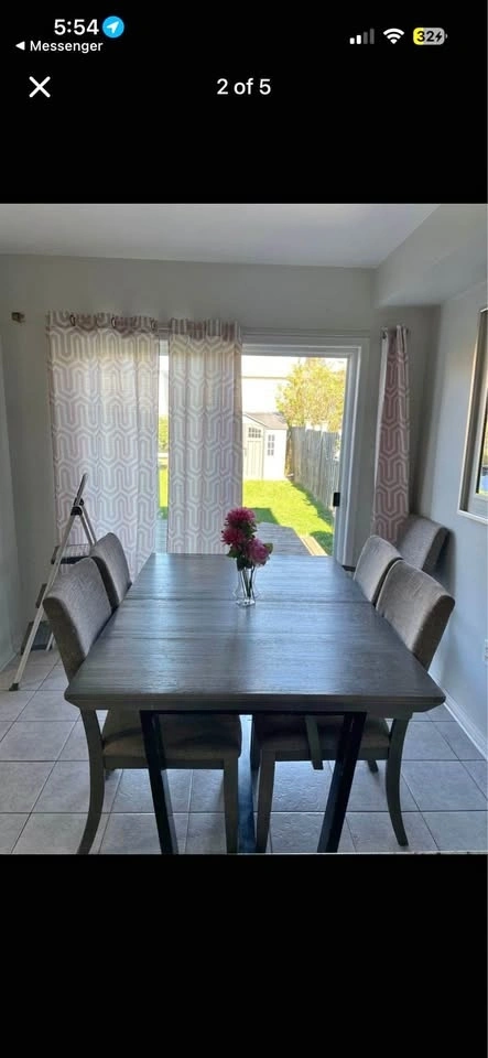 Comes with all 6 chairs (2 have hand rests), the table extends in the middle with an additional plank