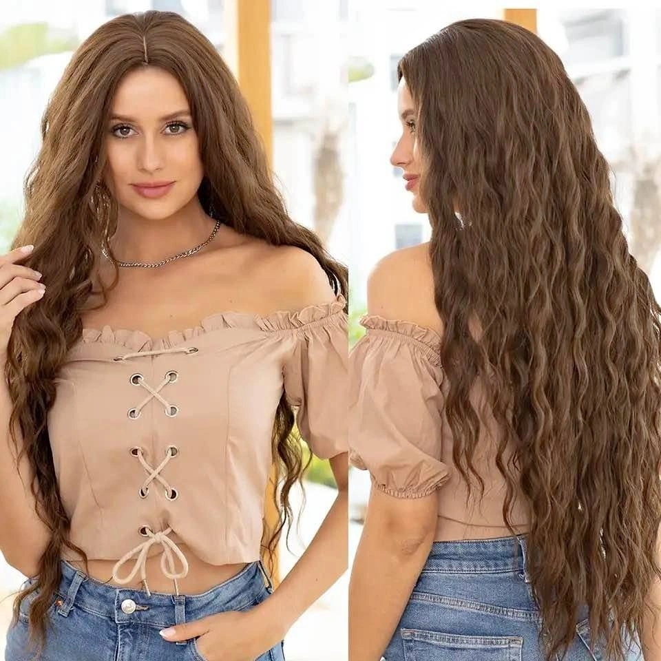 Dark brown long curly synthetic wig